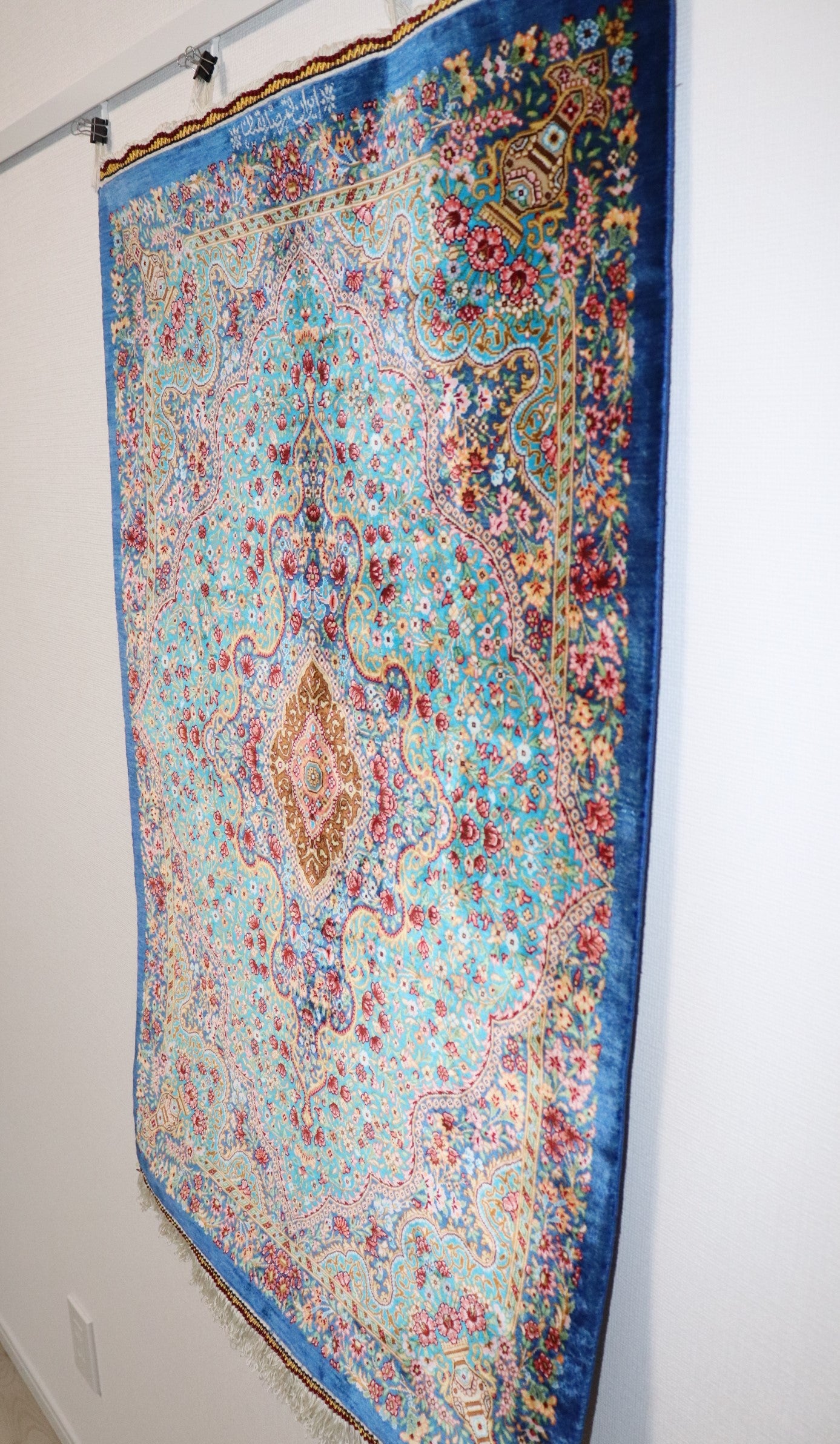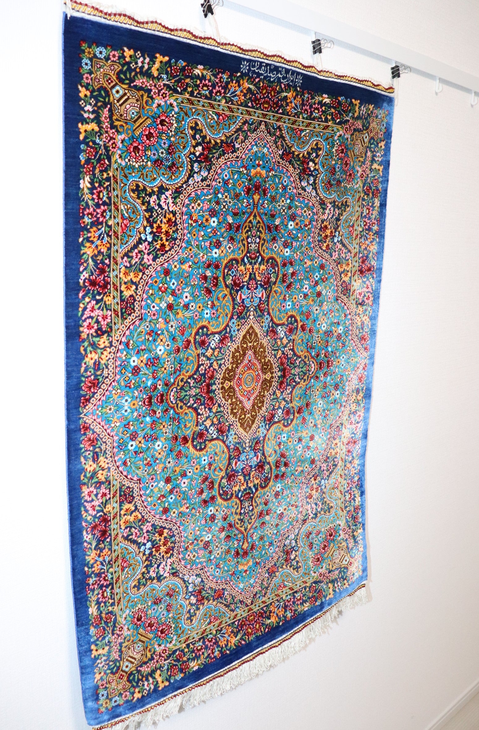 ペルシャ絨毯 クム産 シルク100%[アルバル工房] オリジナル ペイズリー柄 小サイズ 壁飾りに最適 華やかな逸品 ID16010