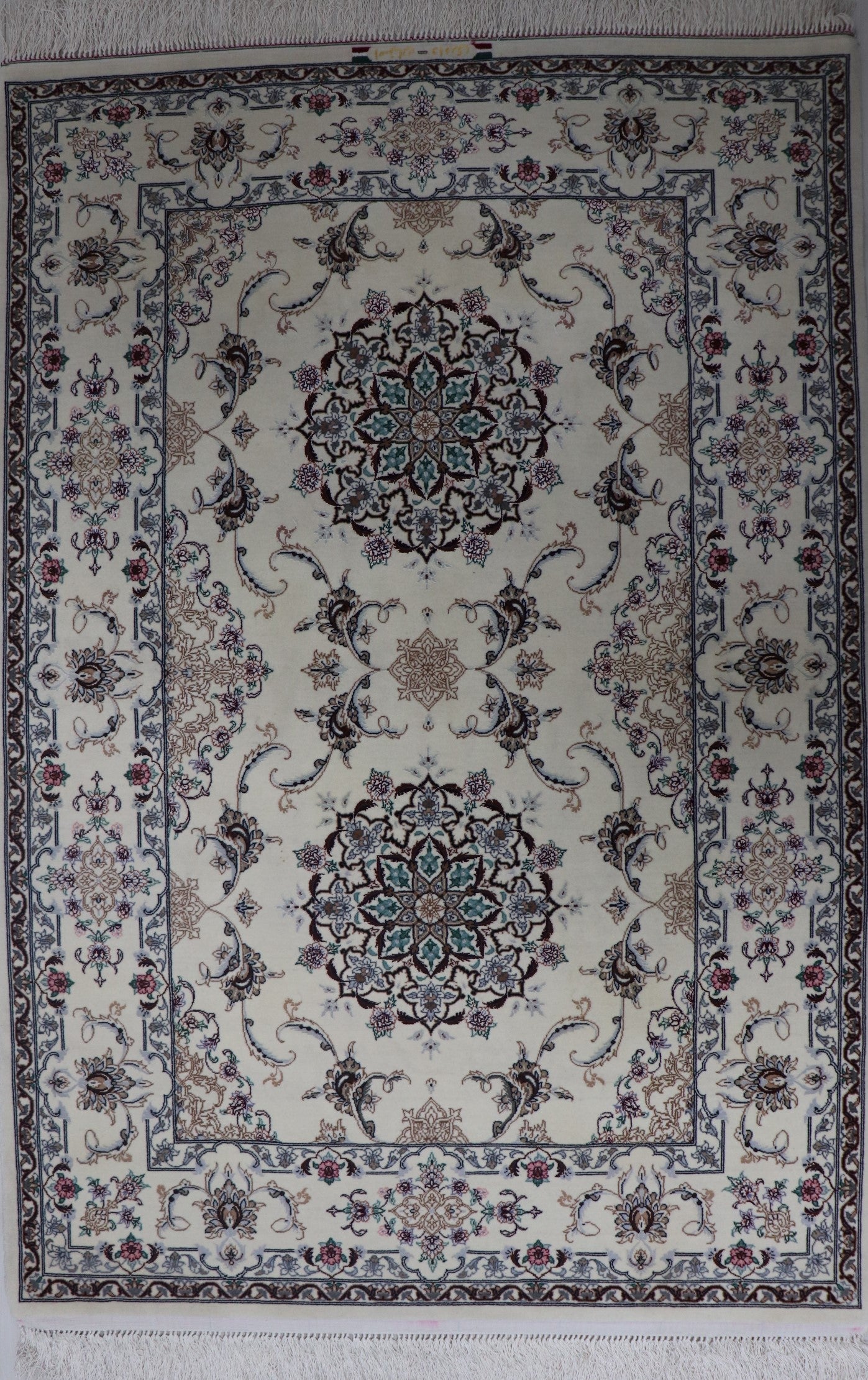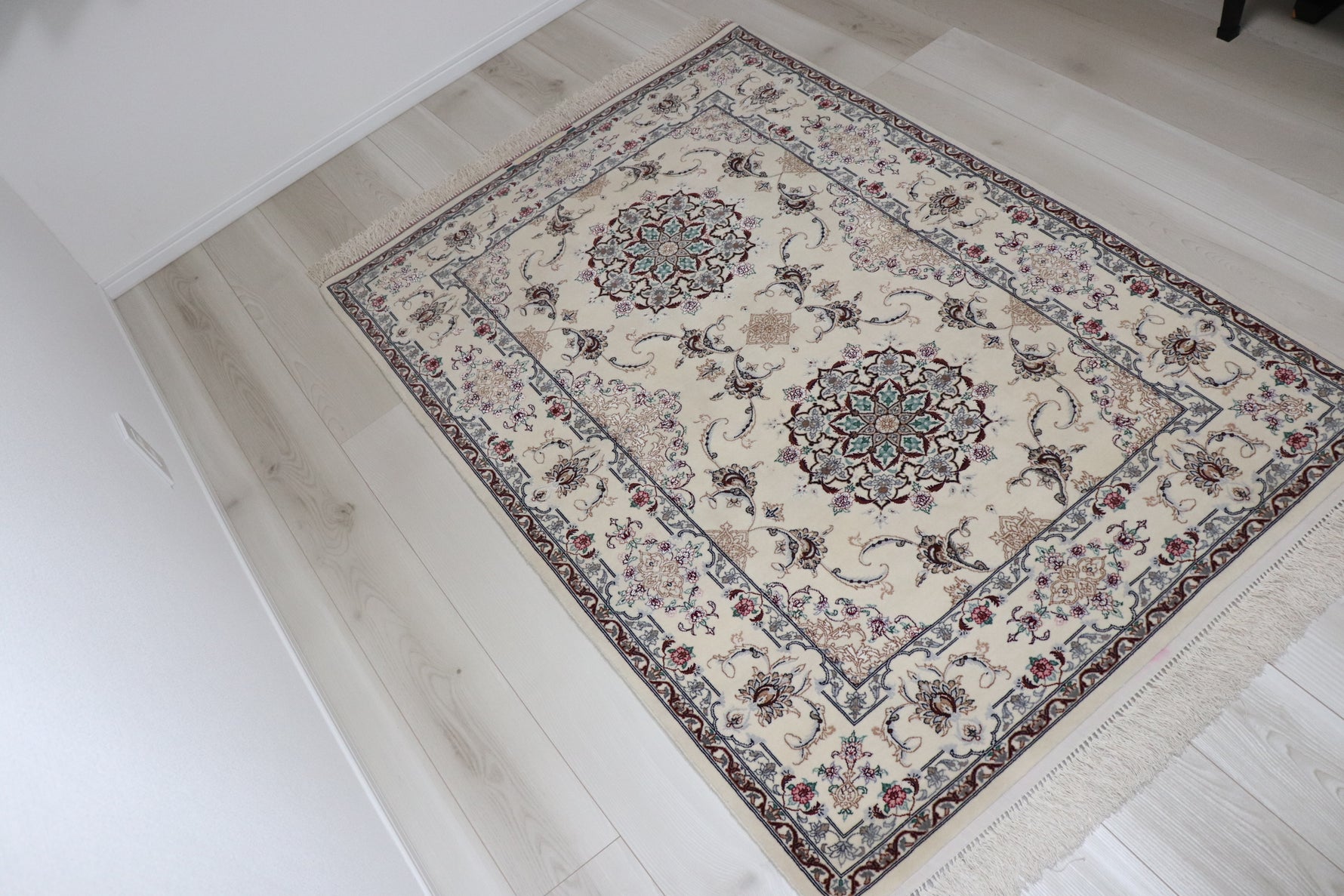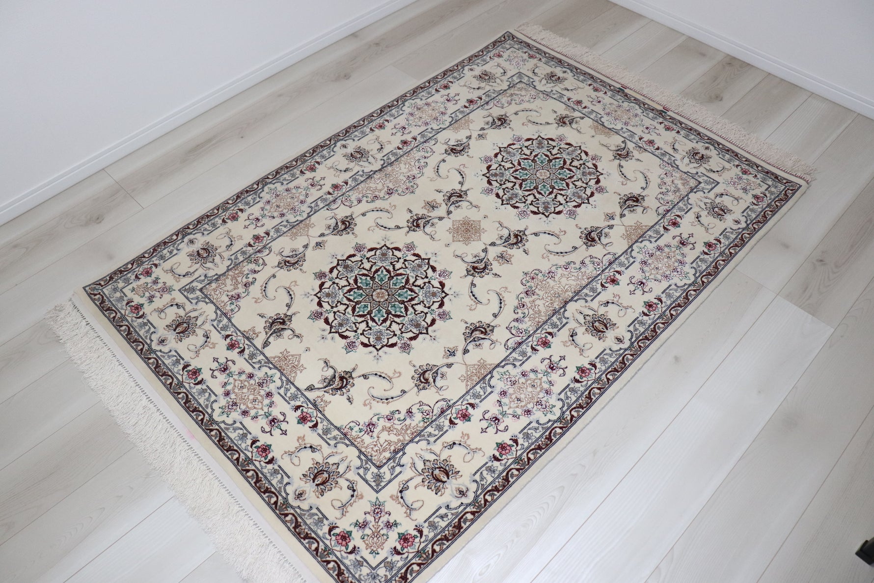 ペルシャ絨毯 イスファハーン産 シルク&コルク [ダバリ工房] 美しい生成り色 リビングスペースにおすすめ ID15005