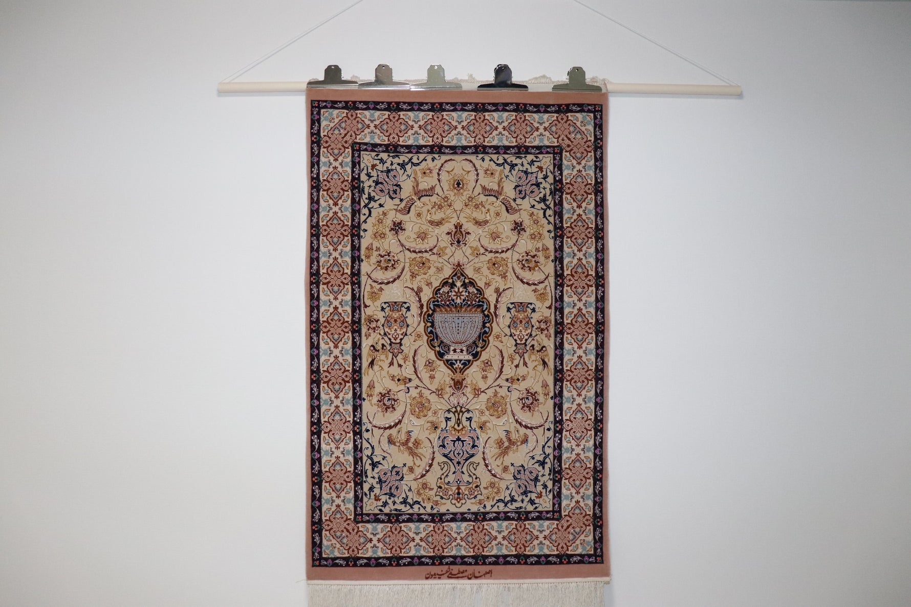 ペルシャ絨毯 クム産 シルク100%[アルバル工房] オリジナル ペイズリー柄 小サイズ 壁飾りに最適 華やかな逸品 ID16010