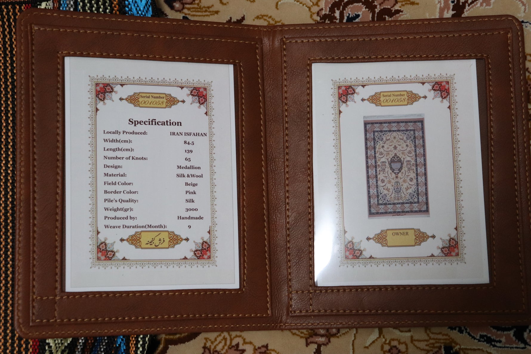 絨毯の品質証明書