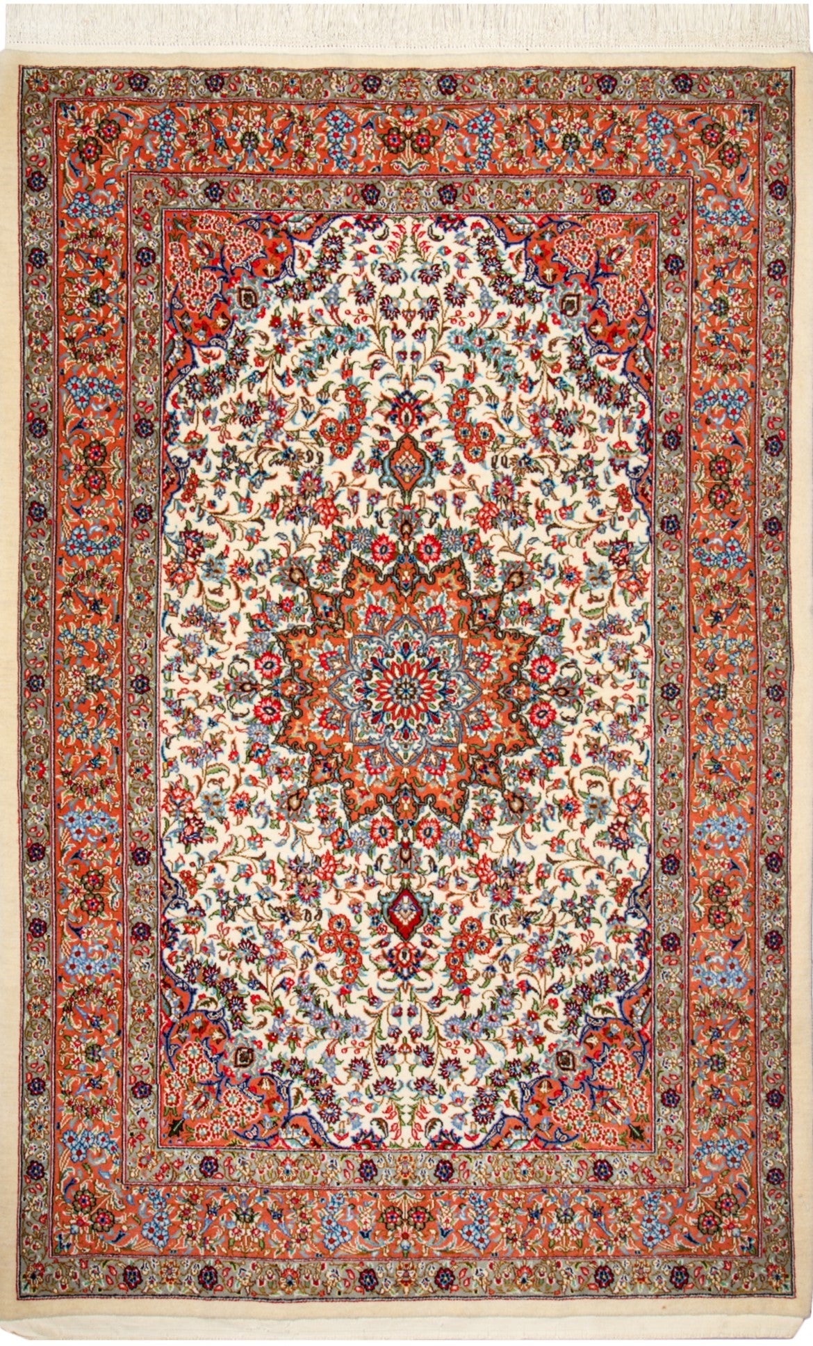 ペルシャ絨毯 クム産 コルク&シルク リビングスペースサイズ ID18037