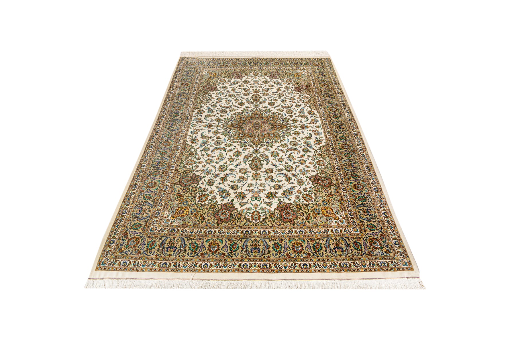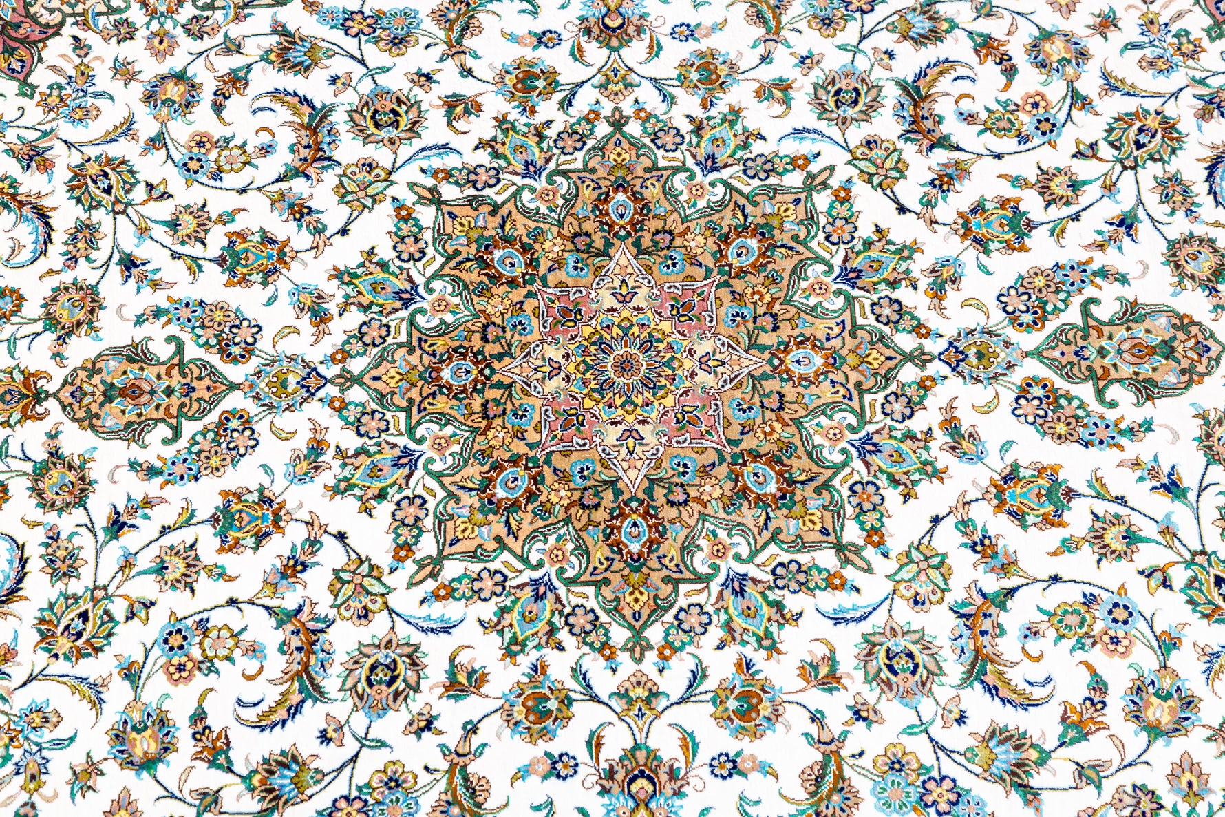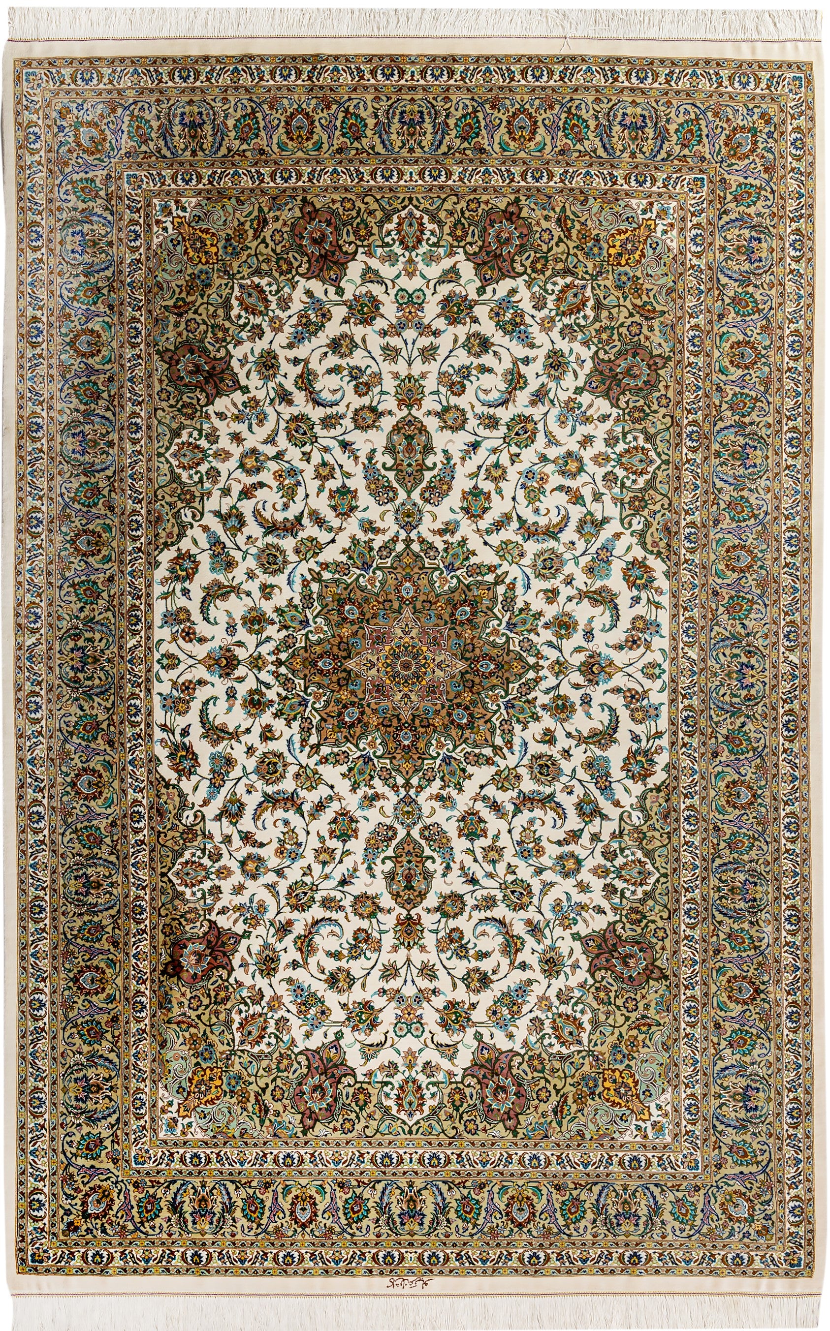 ペルシャ絨毯 クム産 シルク100% アルバル工房 カーシャン柄 リビングサイズ
