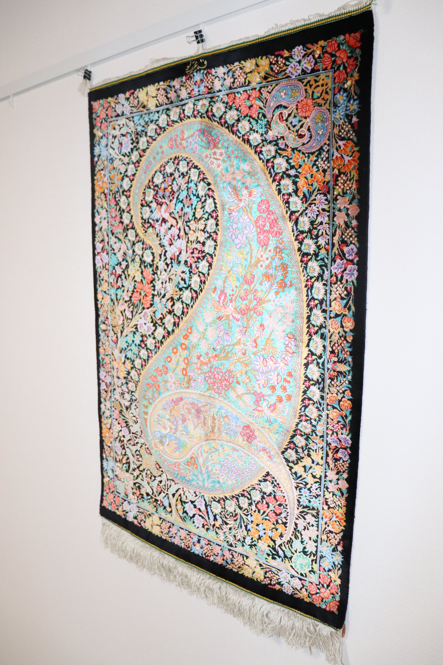ペルシャ絨毯 クム産 シルク100% アルバル工房 玄関マットサイズ壁飾り
