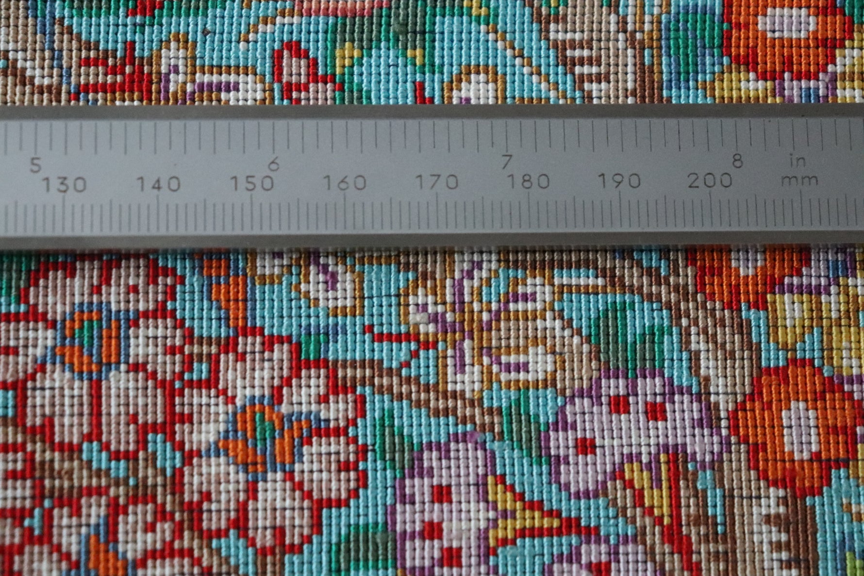 ペルシャ絨毯の真価は、実は裏側裏側からこそわかる!最高級のペルシャ絨毯は、1cmあたり10ノット(織り目)の精緻な結びが施され、その細やかさが芸術の域に達しています。