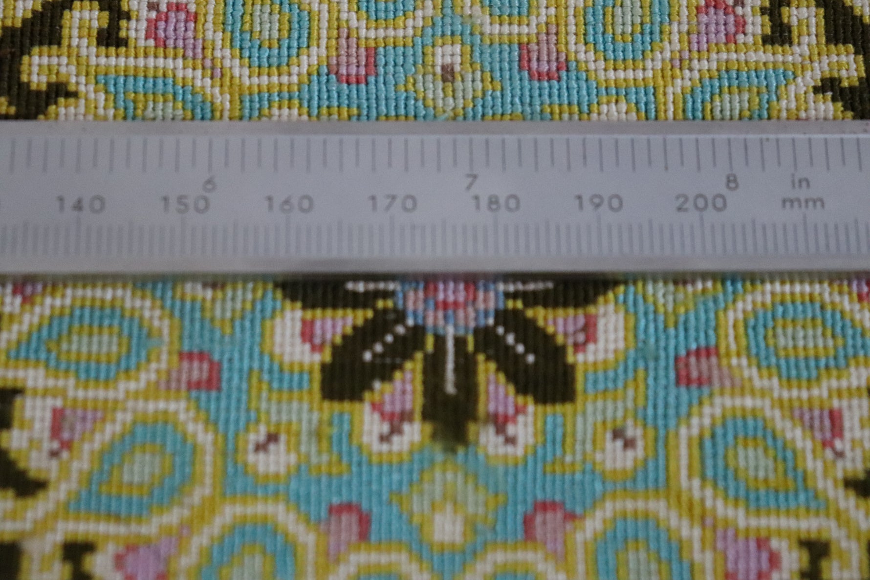 ペルシャ絨毯の真価は、実は裏側裏側からこそわかる!最高級のペルシャ絨毯は、1cmあたり10ノット(織り目)の精緻な結びが施され、その細やかさが芸術の域に達しています。