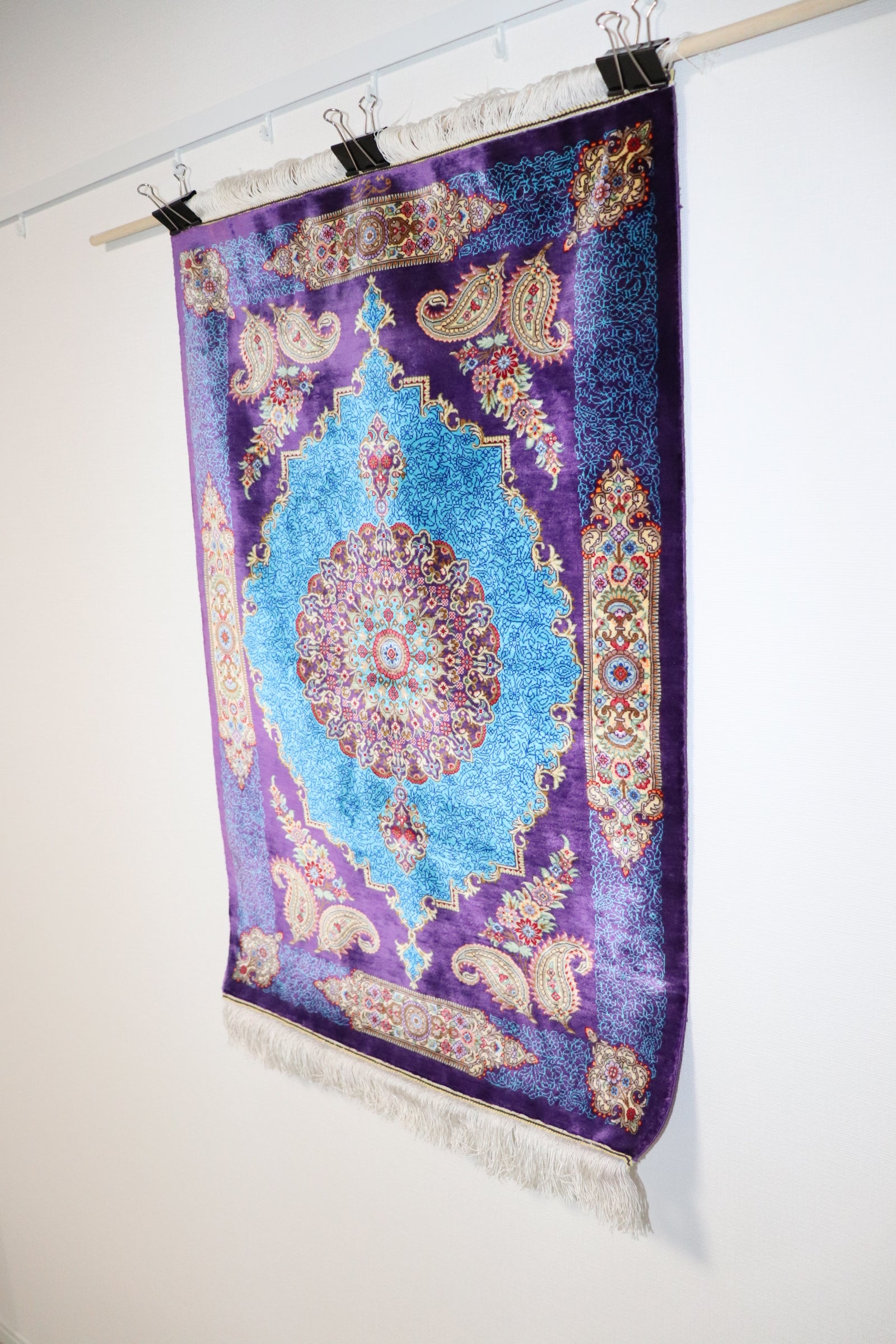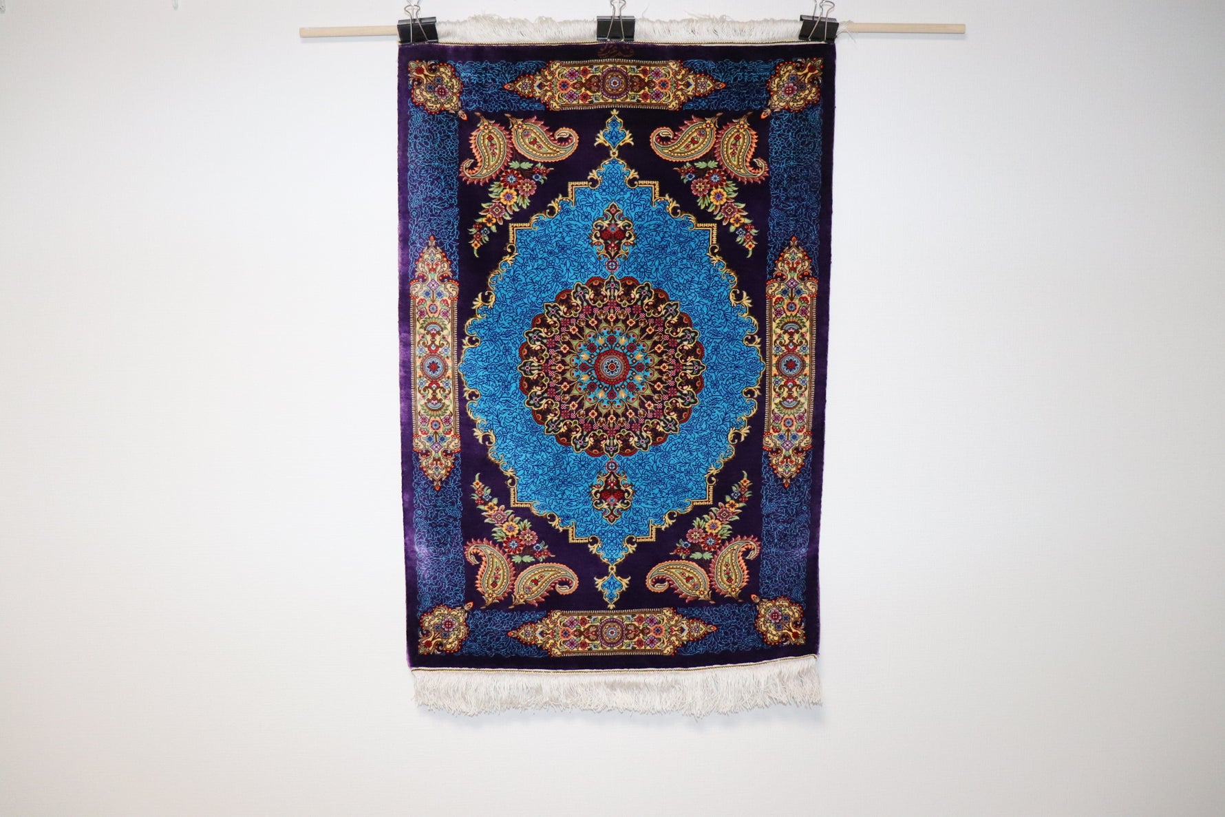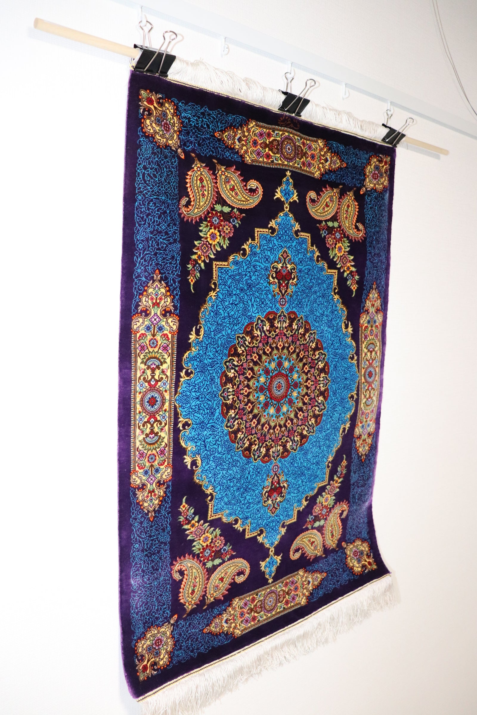 ペルシャ絨毯 クム産 シルク100%[アルバル工房] オリジナル ペイズリー柄 小サイズ 壁飾りに最適 華やかな逸品 ID16010