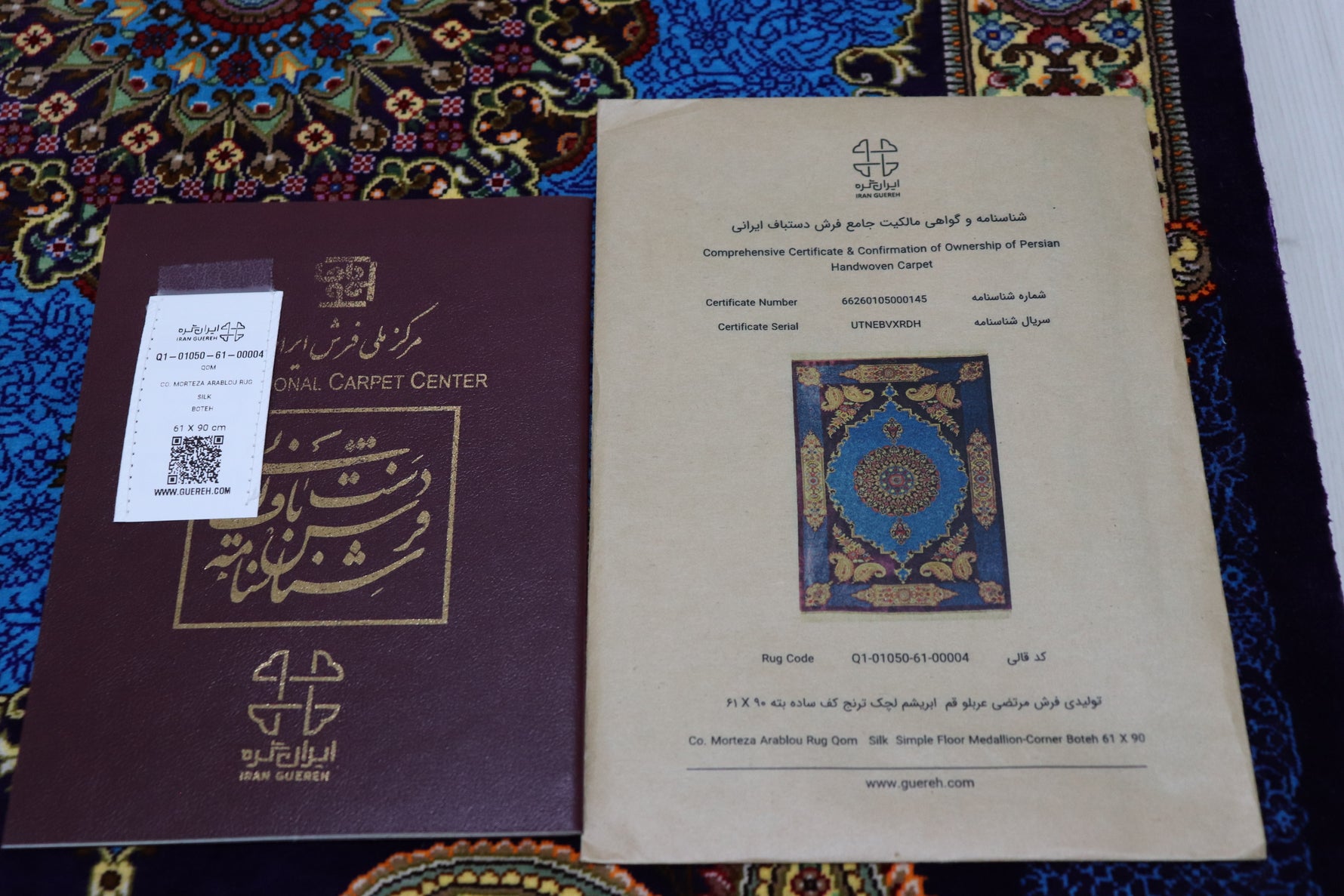 ペルシャ絨毯 クム産 シルク100% [アルバル工房] 豪華メダリオン柄 玄関マットサイズ ID14016