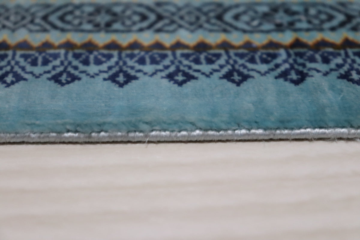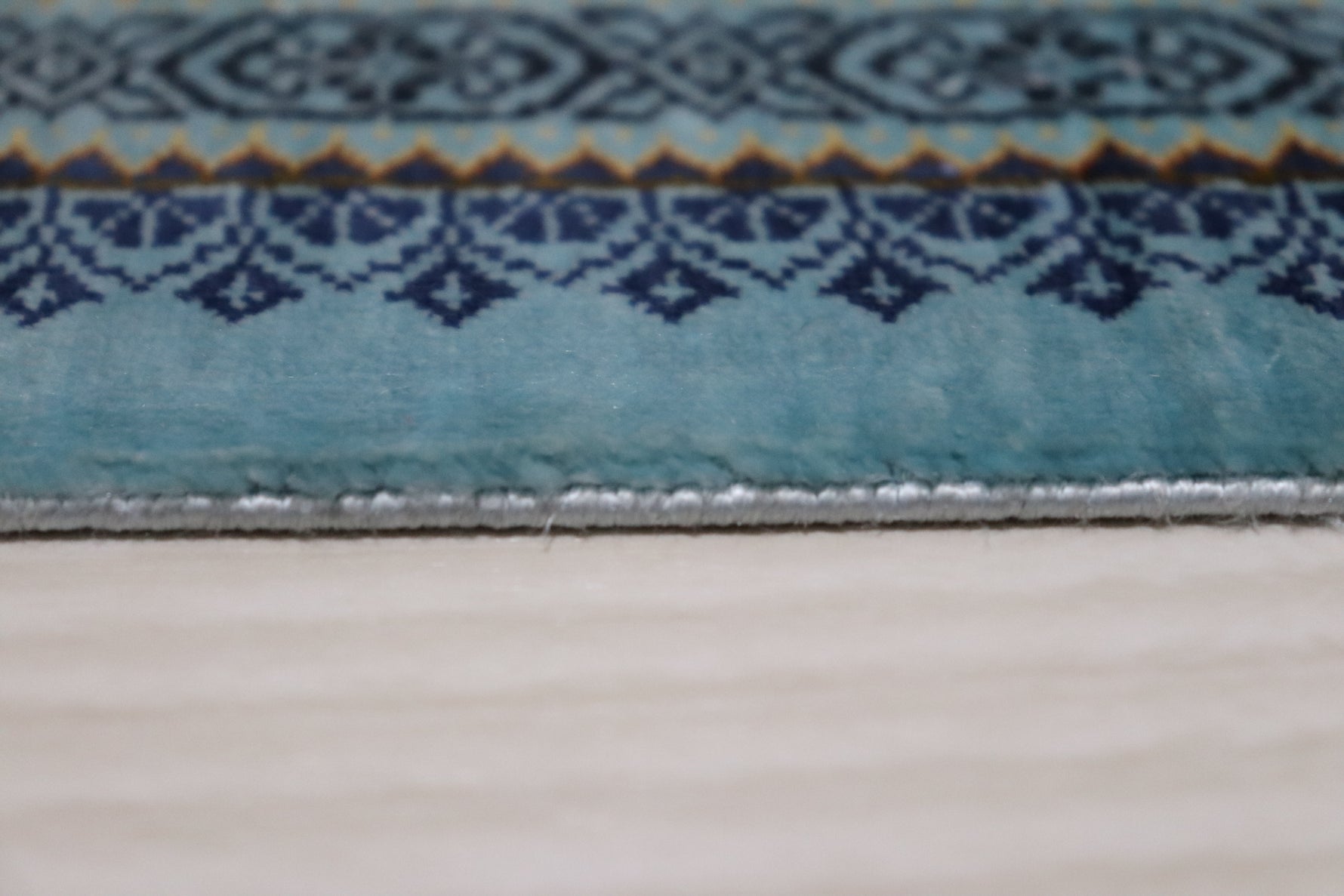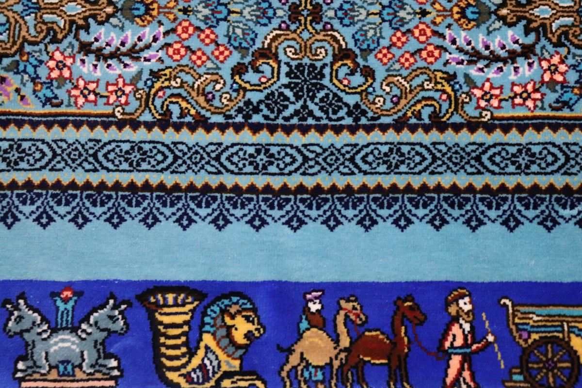 バゲルザデ工房の名を世界に広めた傑作。優雅なスカイブルーとパネルデザインの融合が描く、究極のシルクペルシャ絨毯。