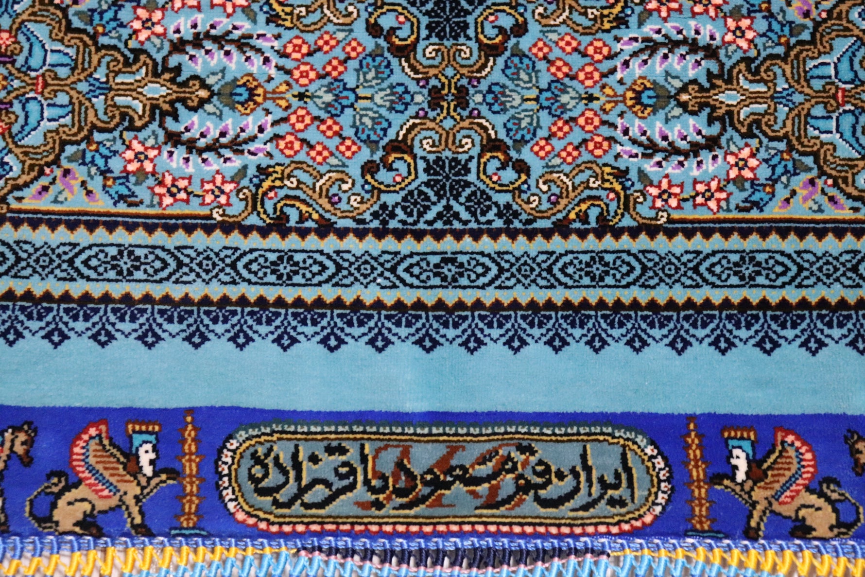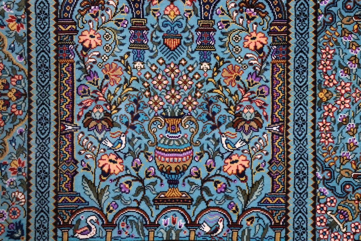 ペルシャ絨毯 クム産 シルク100% [バゲルザデ工房] 工房傑作パネルデザイン リビングスペースサイズ ID11018