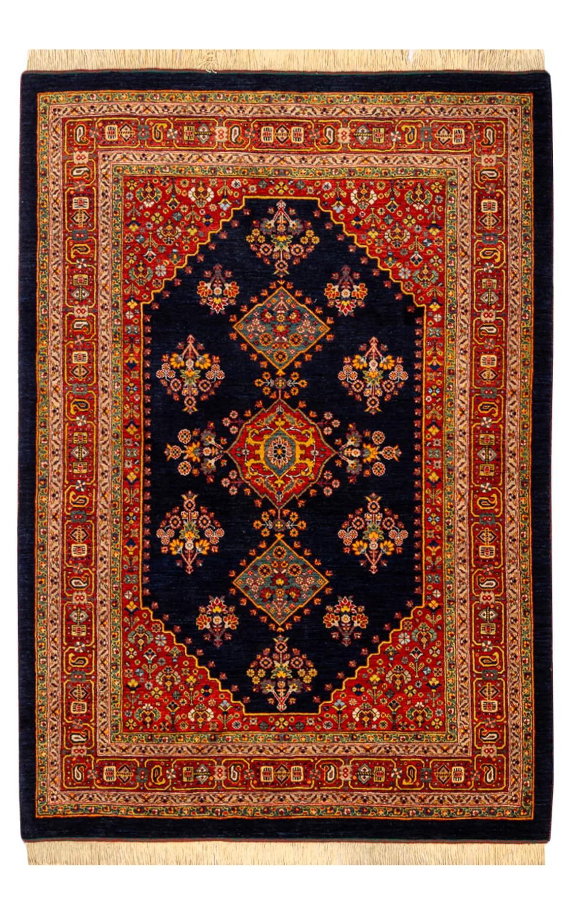 「どんなインテリアにも合う、質の良いラグが欲しい」。そんな方に、まず初めにおすすめしたいのが、このシラーズ・カシュガイ産の手織り絨毯です。優しいクリーム色をベースに、遊牧民カシュガイの伝統的な模様が、主張しすぎず、それでいて楽しく描かれています。