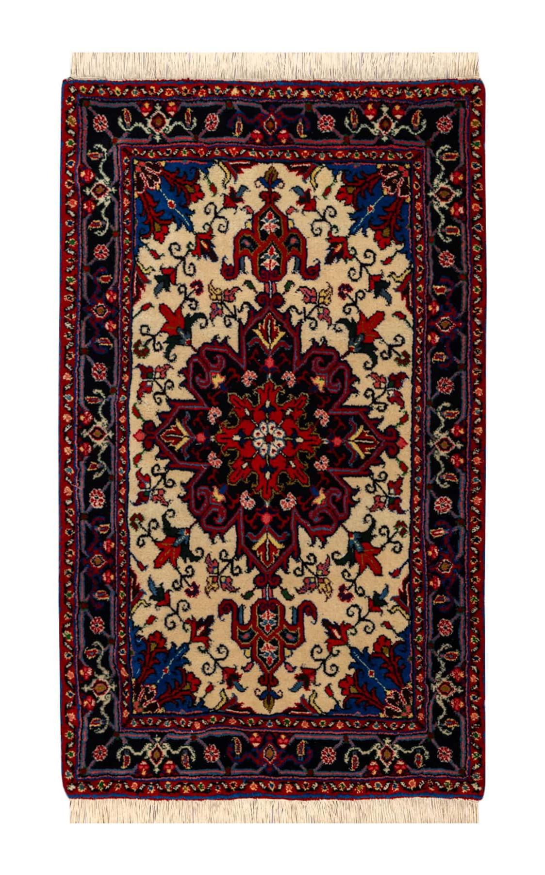 ペルシャ絨毯【ヘリス柄】クリーム地が穏やかな手織り(約1.5㎡)