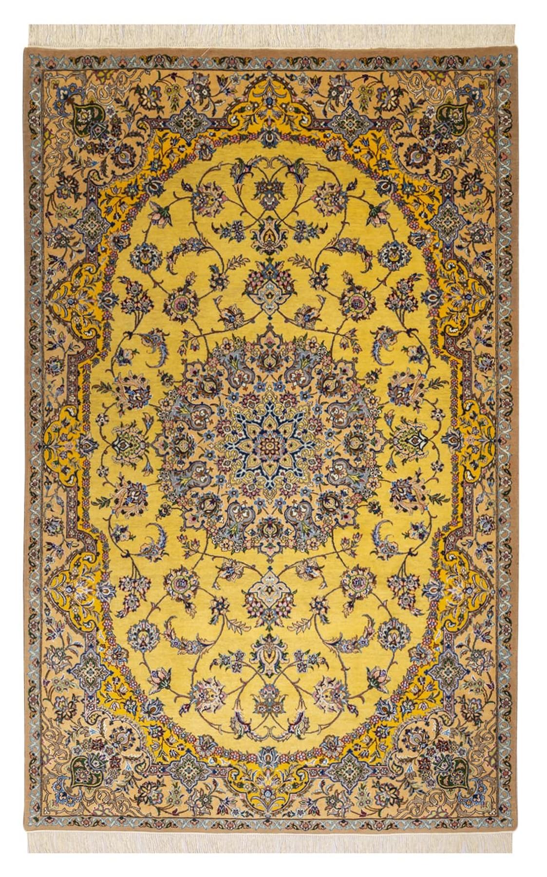 最安値 ペルシャ絨毯【ナイン産】ゴールド地 ラチ(四隅)メダリオン