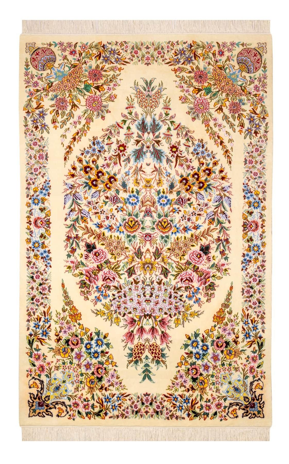 最安値 ペルシャ絨毯【ナイン産】上品なクリーム地の手織りパーテーションサイズ