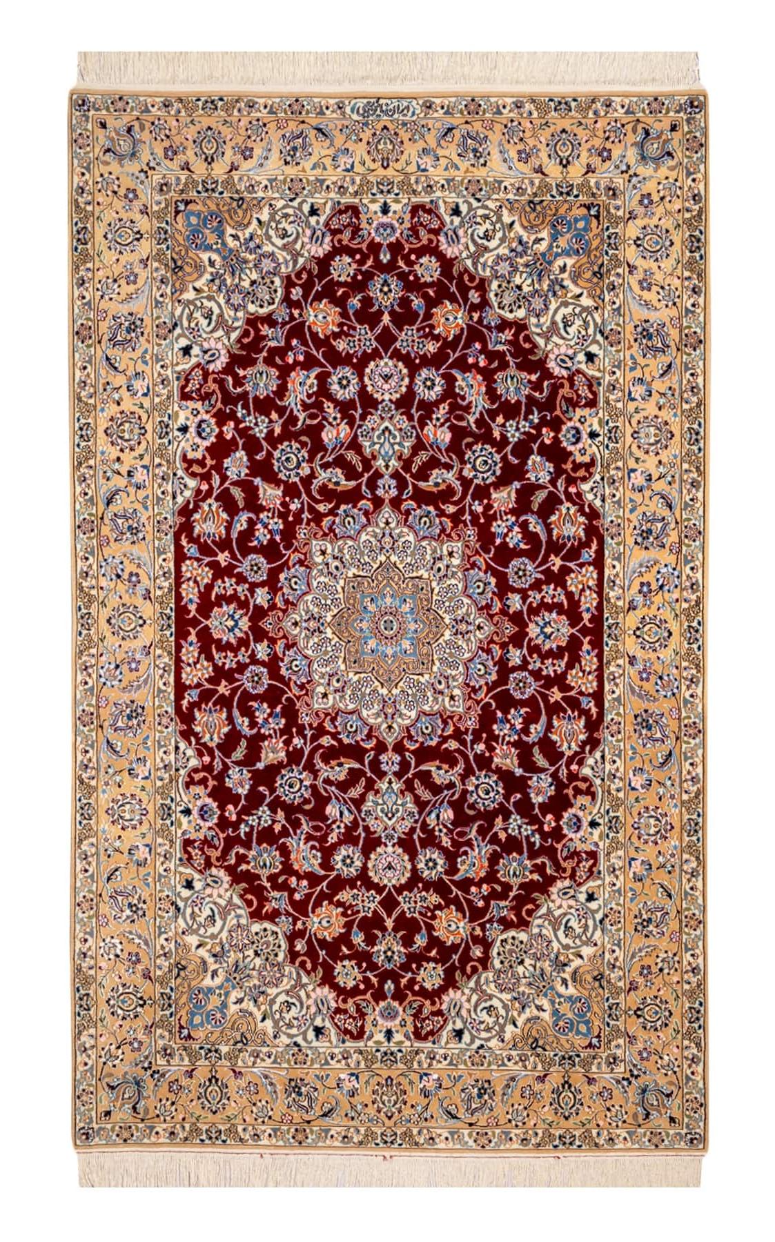 最安値 ペルシャ絨毯【ナイン産】鮮やかなレッド地(約3㎡)