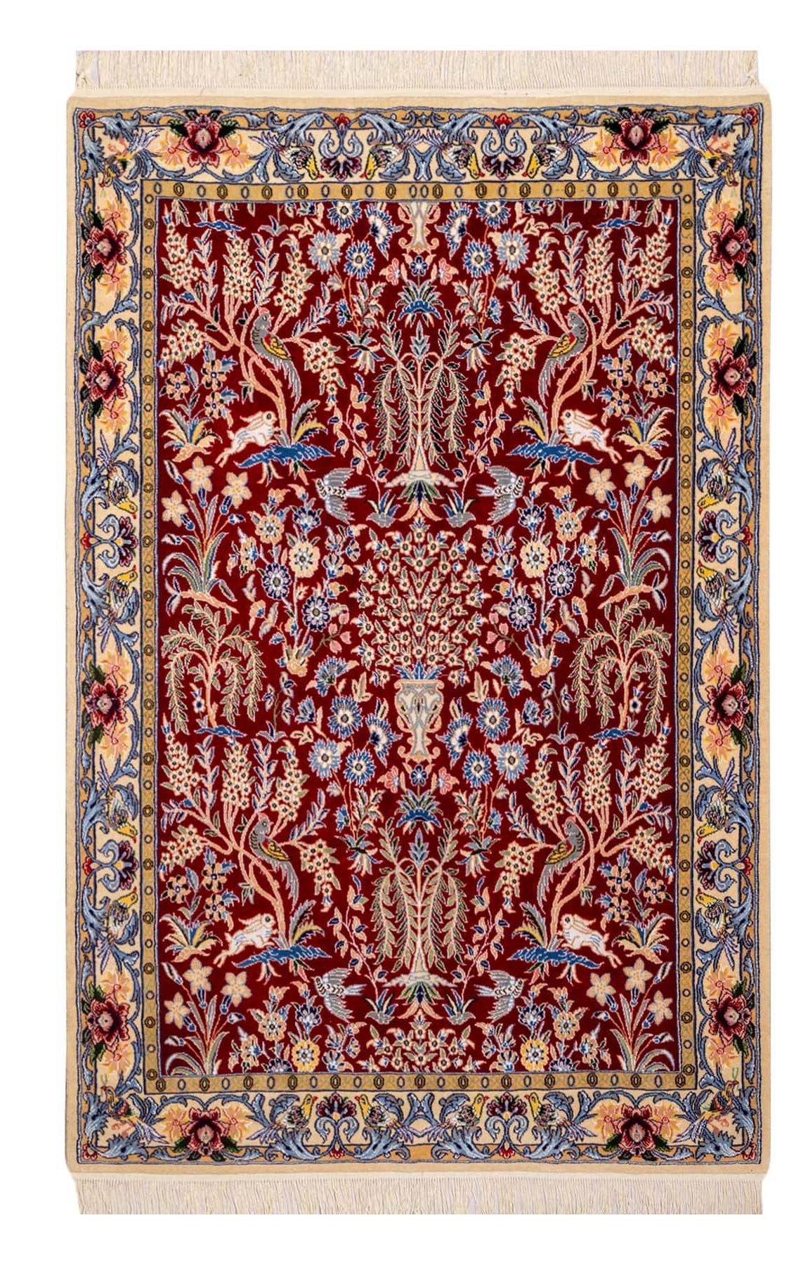 最安値 ペルシャ絨毯【ナイン産】ラックレッドが目を惹く約1.75㎡(七四分)