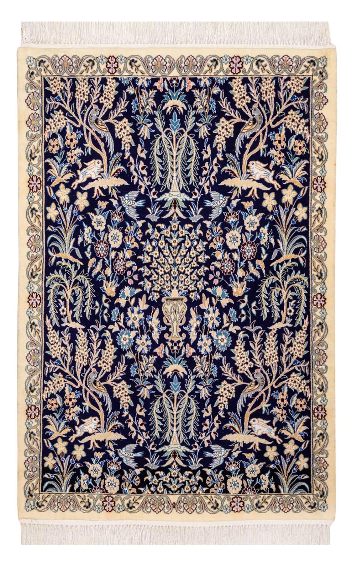 最安値 ペルシャ絨毯【ナイン産】深みのあるネイビー地の約1.75㎡(七四分)