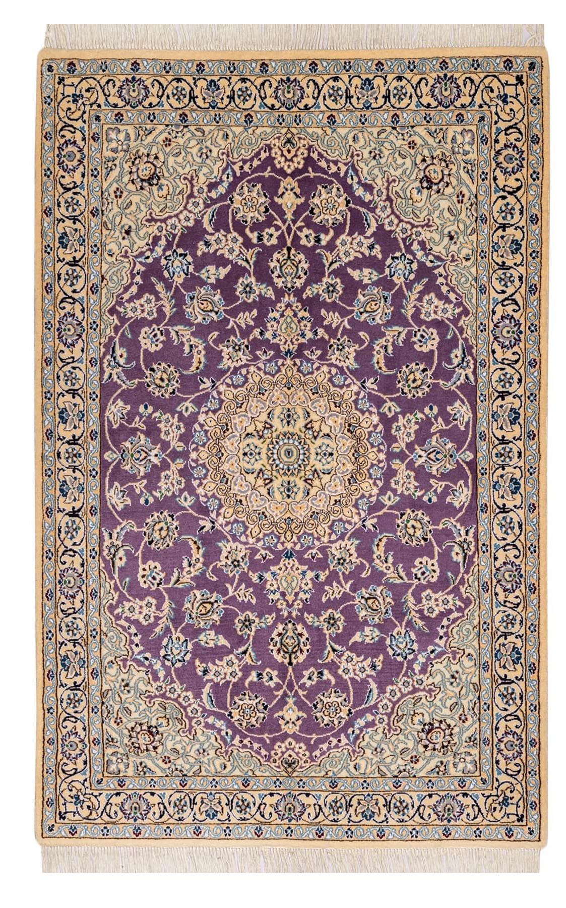 最安値 ペルシャ絨毯【ナイン産】気品あるパープル地の手織りペルシャ絨毯(約3㎡)