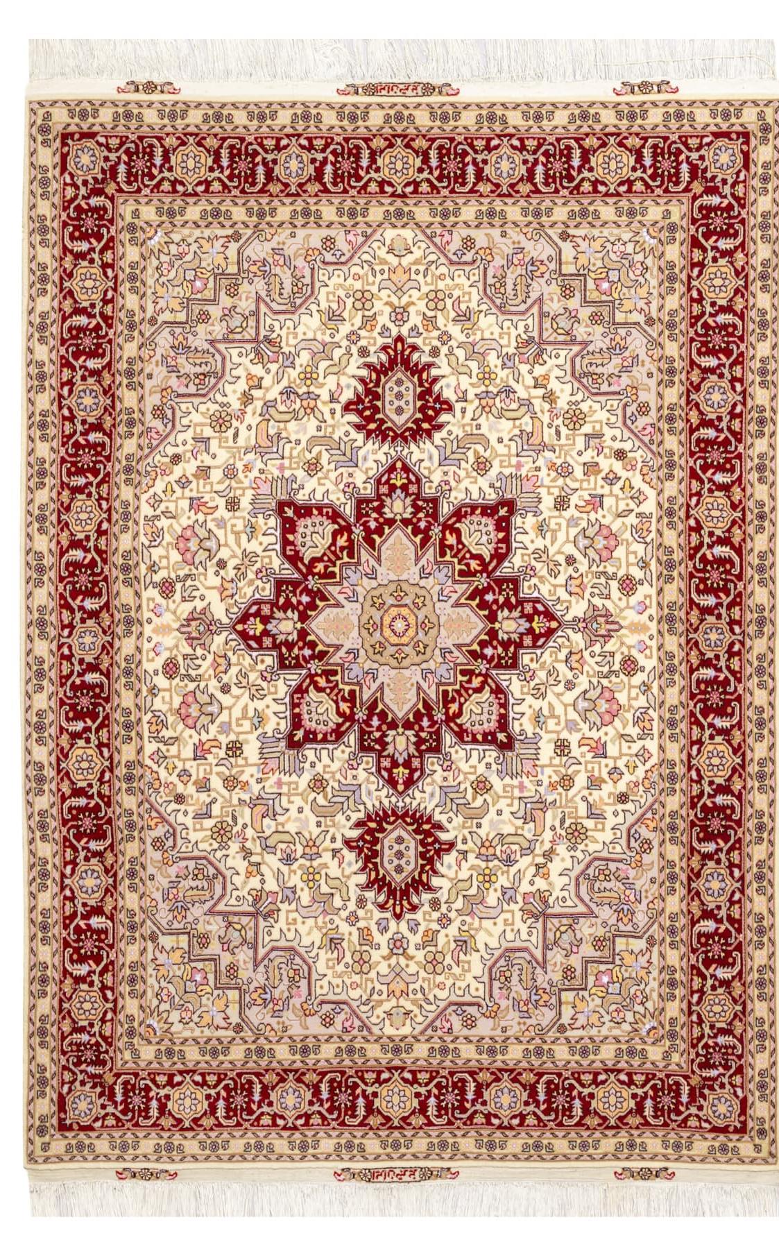 お部屋に合わせやすく、温かみのあるインテリアを演出するタブリーズ産の手織りペルシャ絨毯です。伝統的で力強い「ヘリス柄」を、優しいクリーム色をベースにすることで、落ち着いた上品な印象に仕上げました。