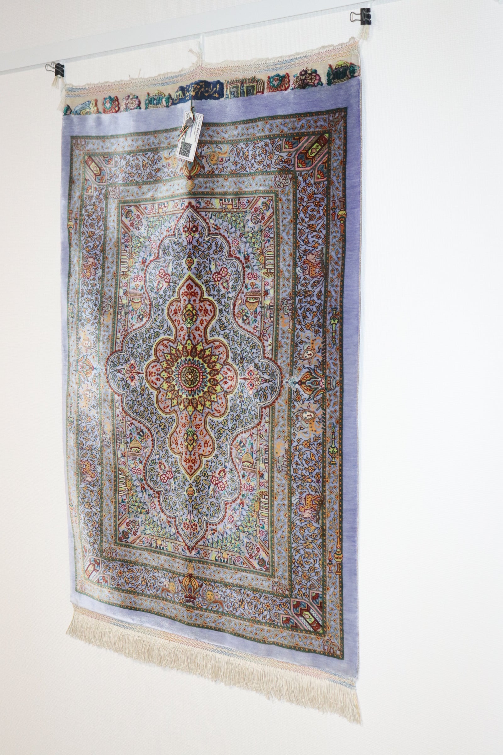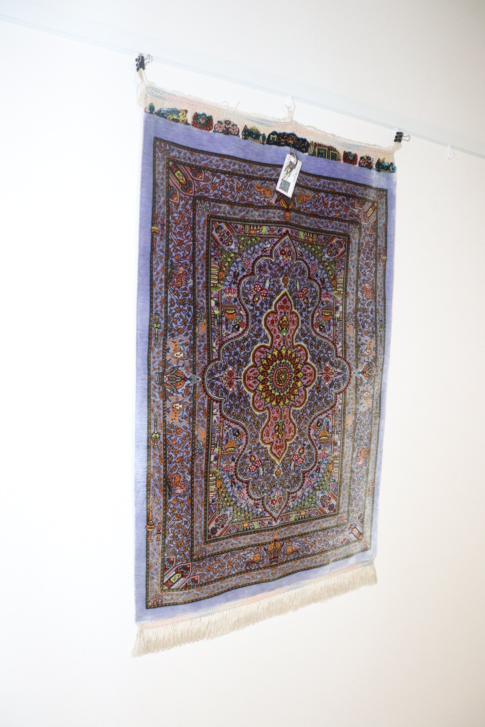 ペルシャ絨毯 クム産 シルク100%[アルバル工房] オリジナル ペイズリー柄 小サイズ 壁飾りに最適 華やかな逸品 ID16010