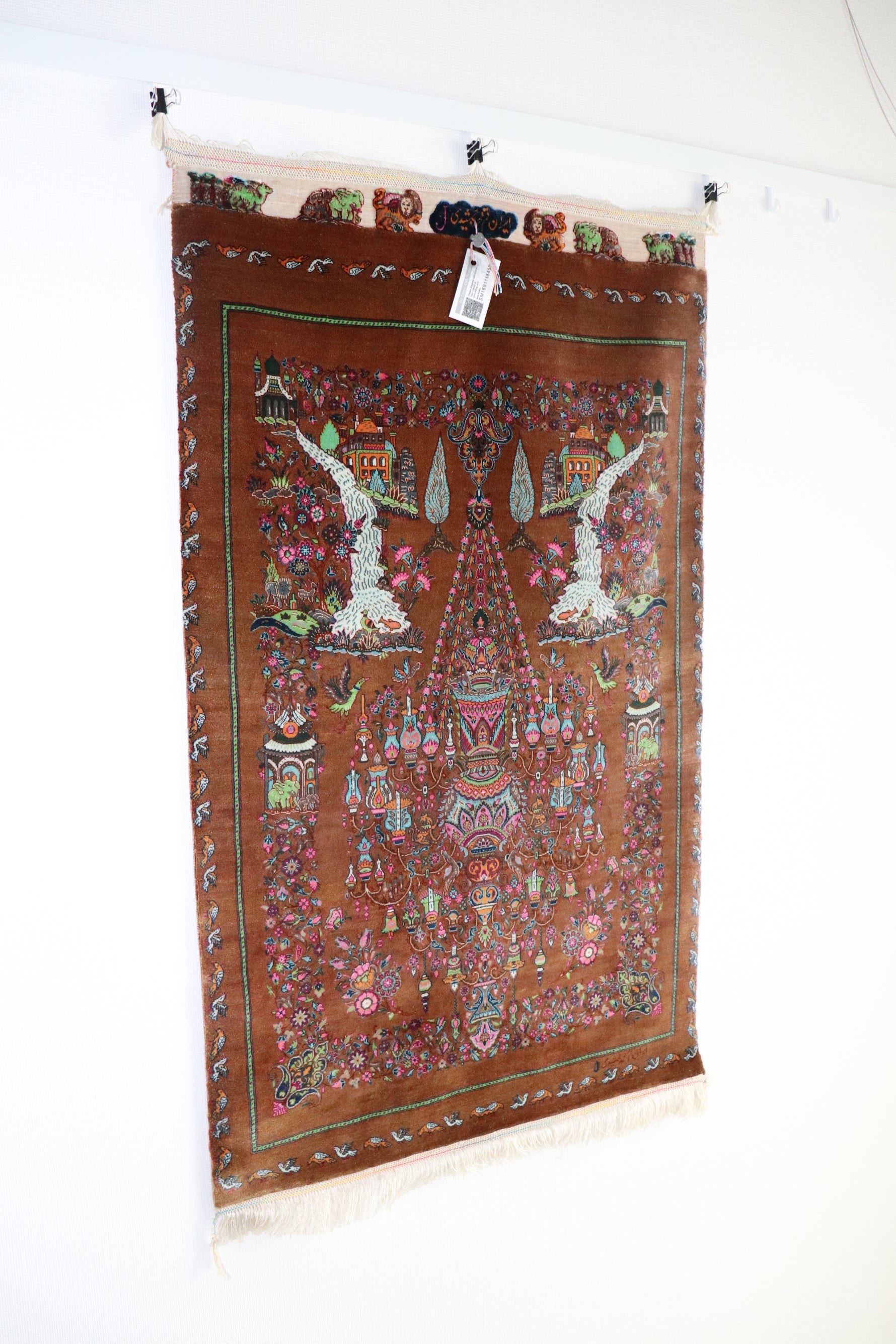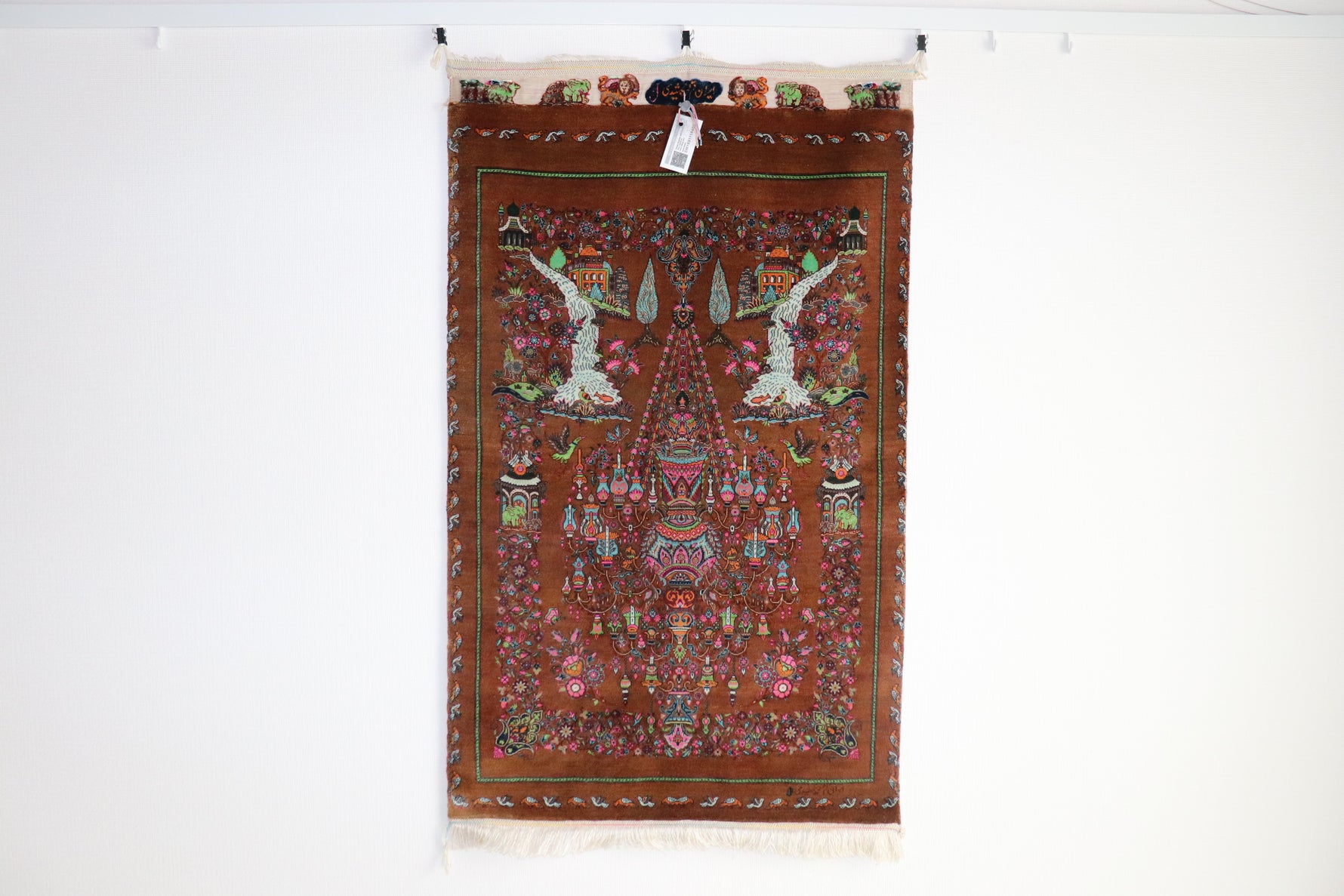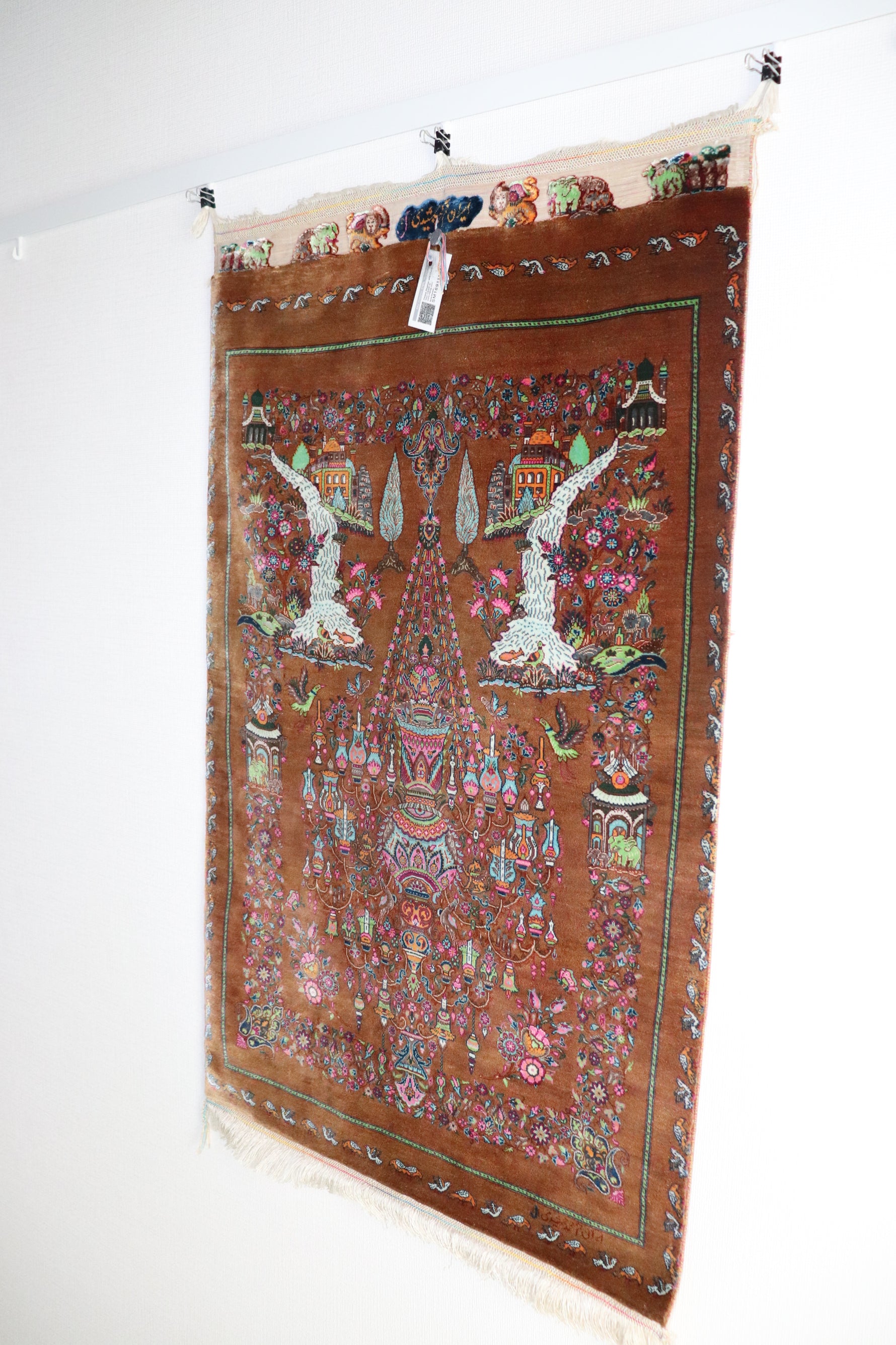 ペルシャ絨毯 クム産 シルク100%[アルバル工房] オリジナル ペイズリー柄 小サイズ 壁飾りに最適 華やかな逸品 ID16010