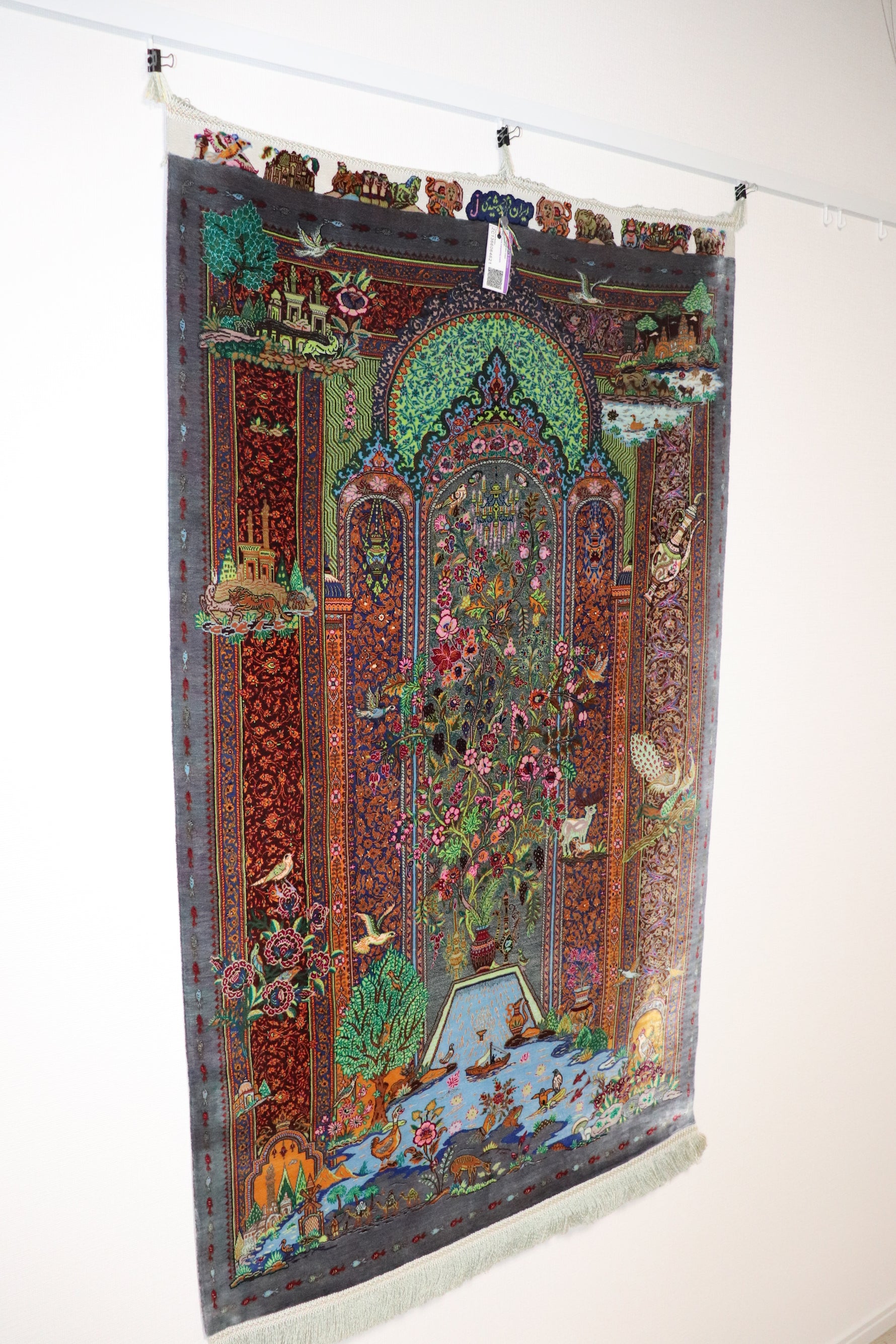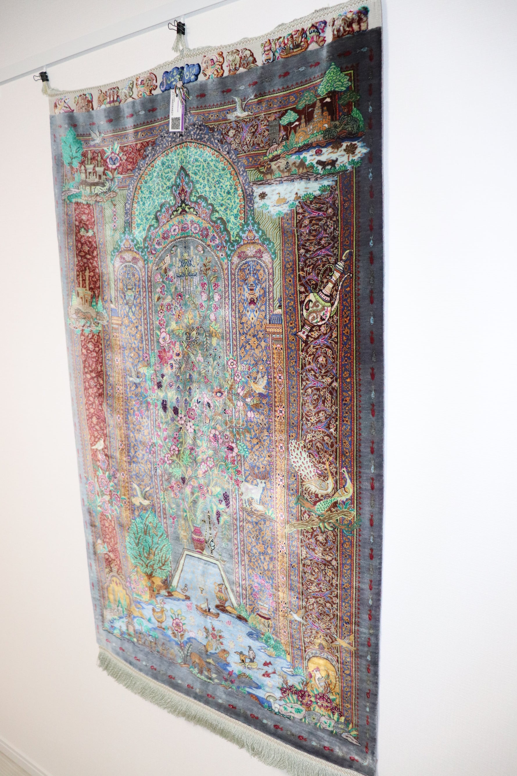 シルク100%を使用し、170万ノット平方メートルという驚異的な密度で織られたこの絨毯は、細部にまでこだわり抜いた手織りの技術が光ります。約26ヶ月という長い制作期間をかけて完成したこの作品は、シルク特有の艶やかさと柔らかな触感を持ち、どんな空間にも贅沢な風格をもたらします。