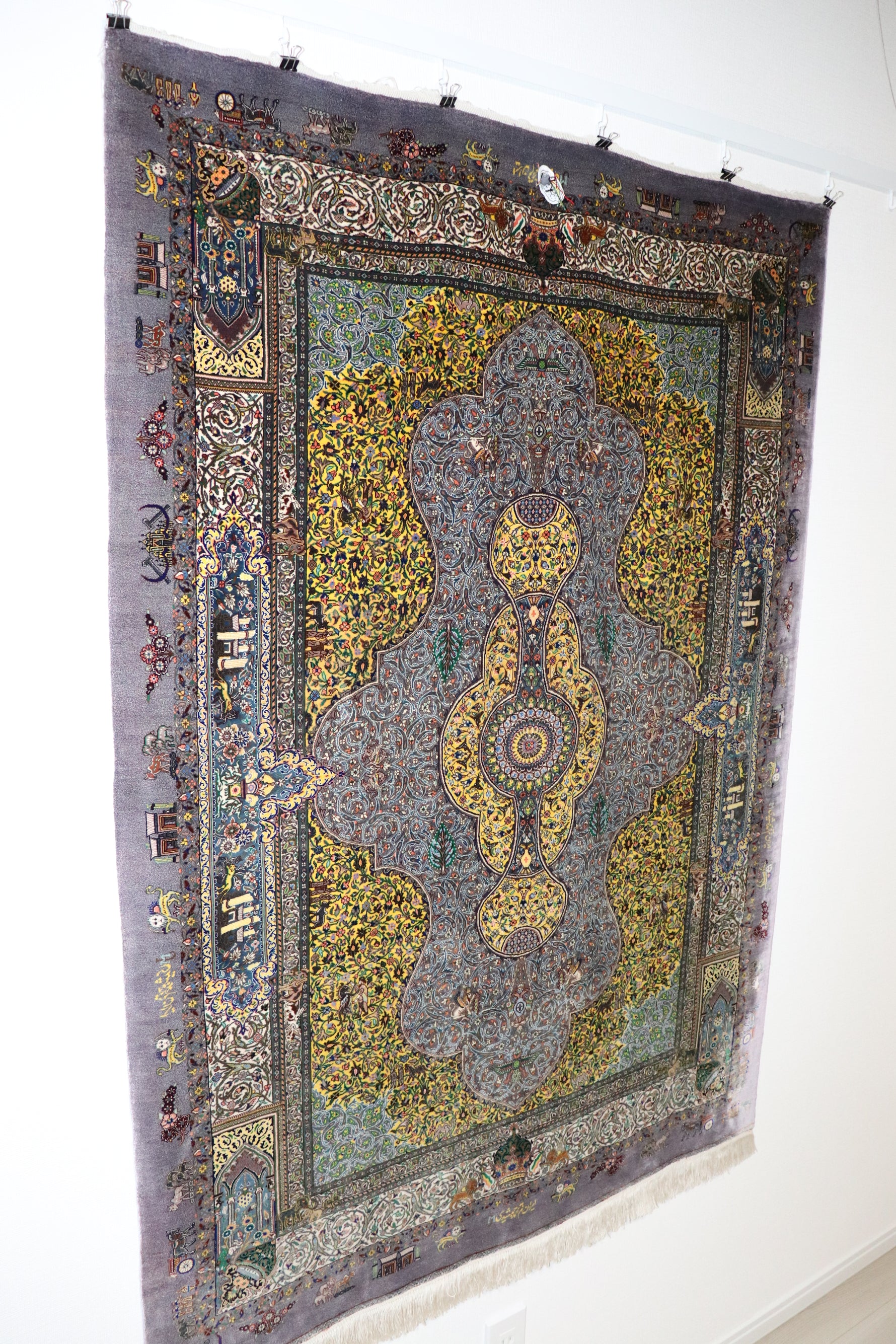 美術館に展示すべき傑作、ジャムシディ工房の最高級シルクペルシャ絨毯。色鮮やかで圧巻の美しさ。