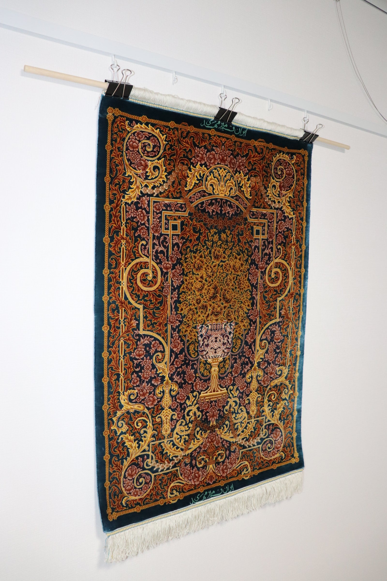 ペルシャ絨毯 クム産 シルク100% [ミルメヒディ工房] 花瓶柄 絵画のような織美 壁掛けに最適 ID16010