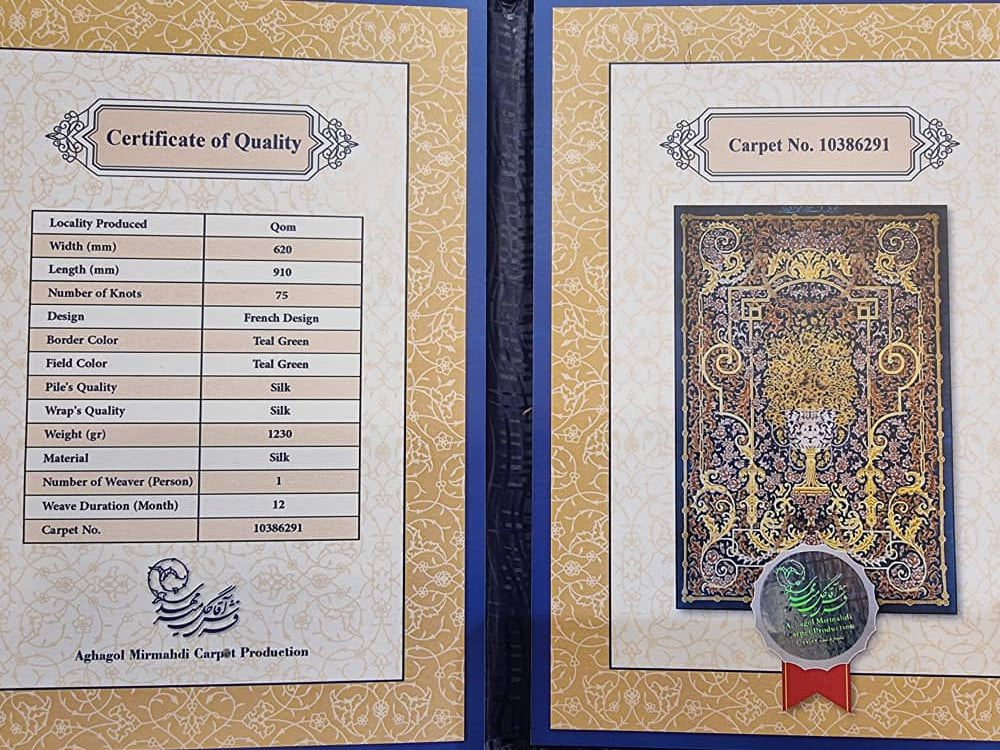 クム産 ミルメヒディ工房 シルクペルシャ絨毯 (French Design)