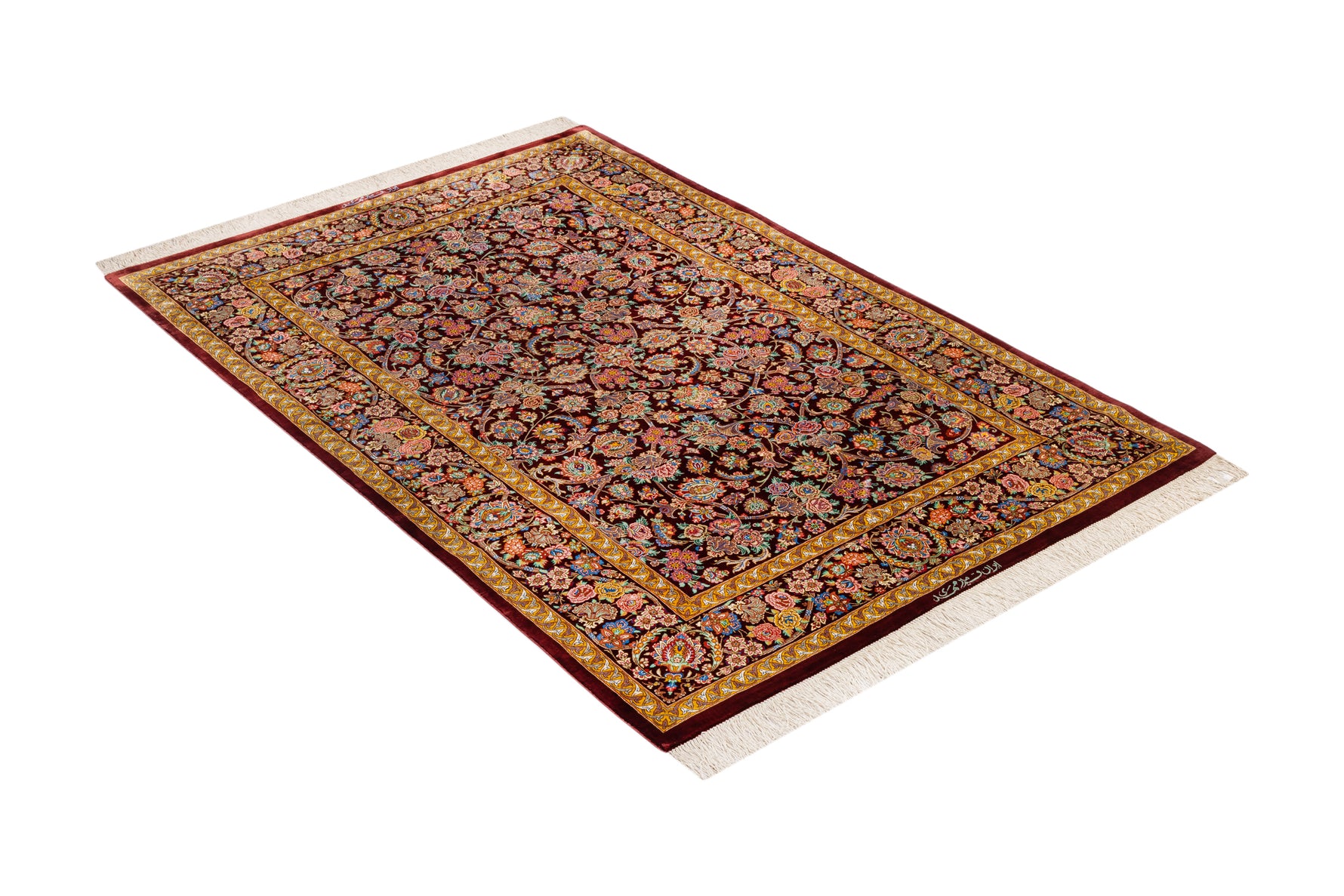ペルシャ絨毯 クム産 シルク100%[アルバル工房] オリジナル ペイズリー柄 小サイズ 壁飾りに最適 華やかな逸品 ID16010