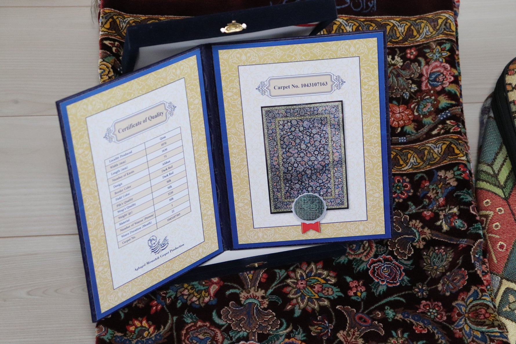 絨毯の品質証明書