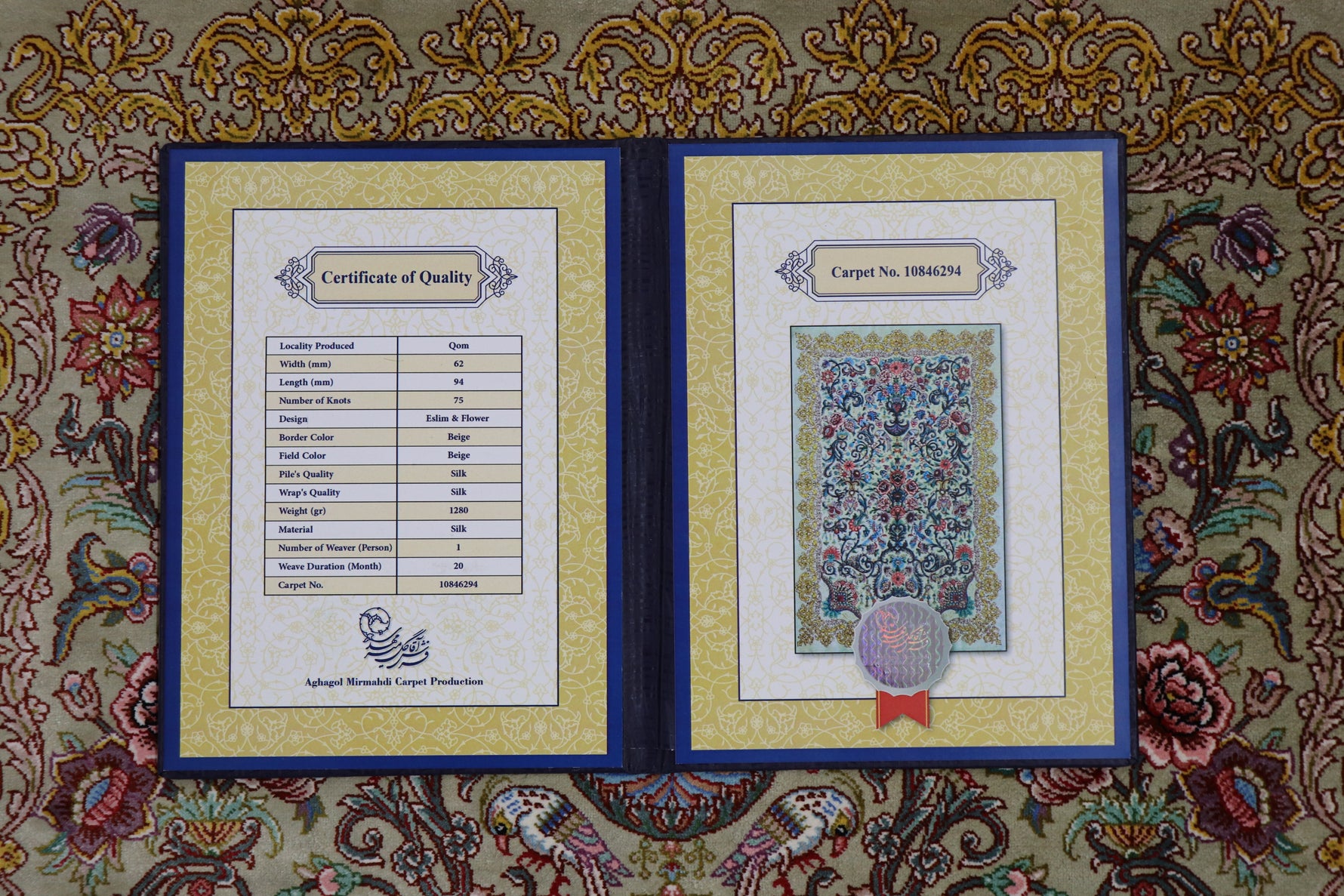 絨毯の品質証明書