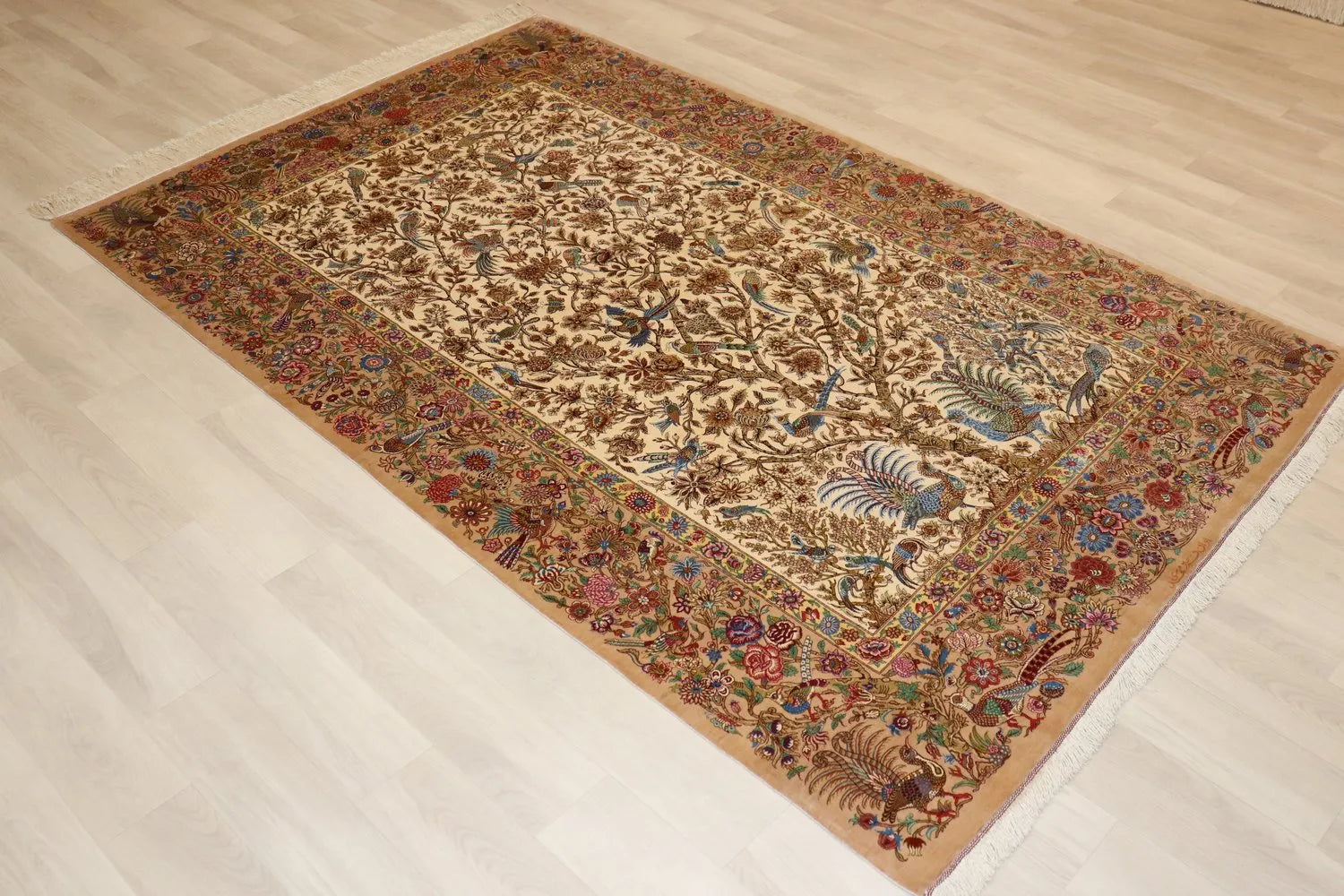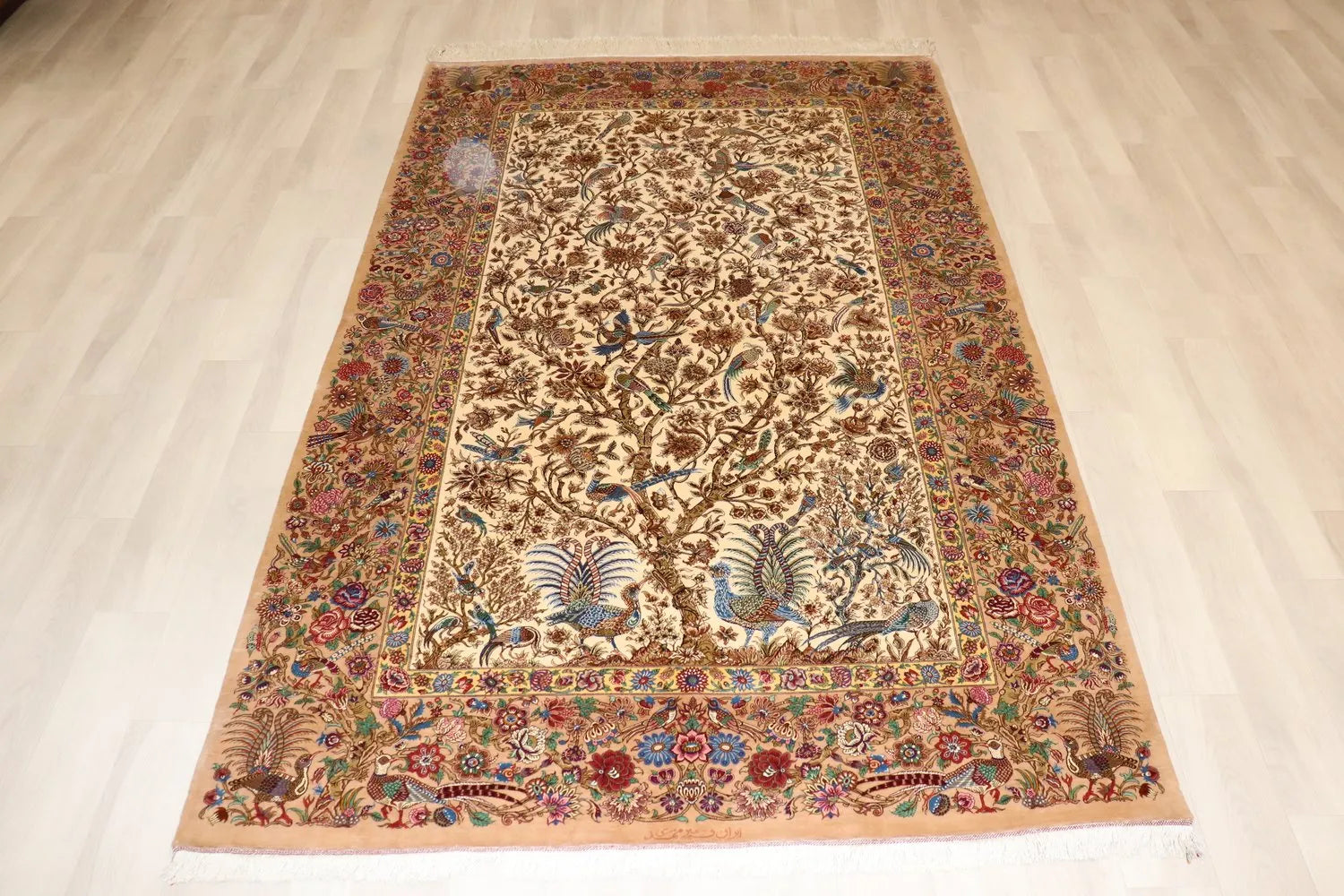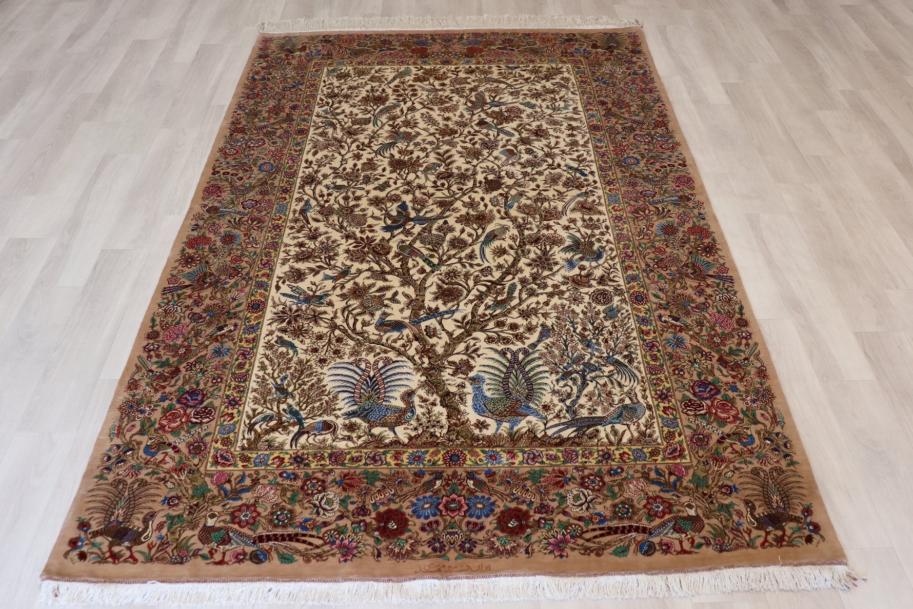 ペルシャ絨毯 クム産 シルク100% [ミルメヒディ工房] 生命力溢れる楽園 生命の樹 ID22002