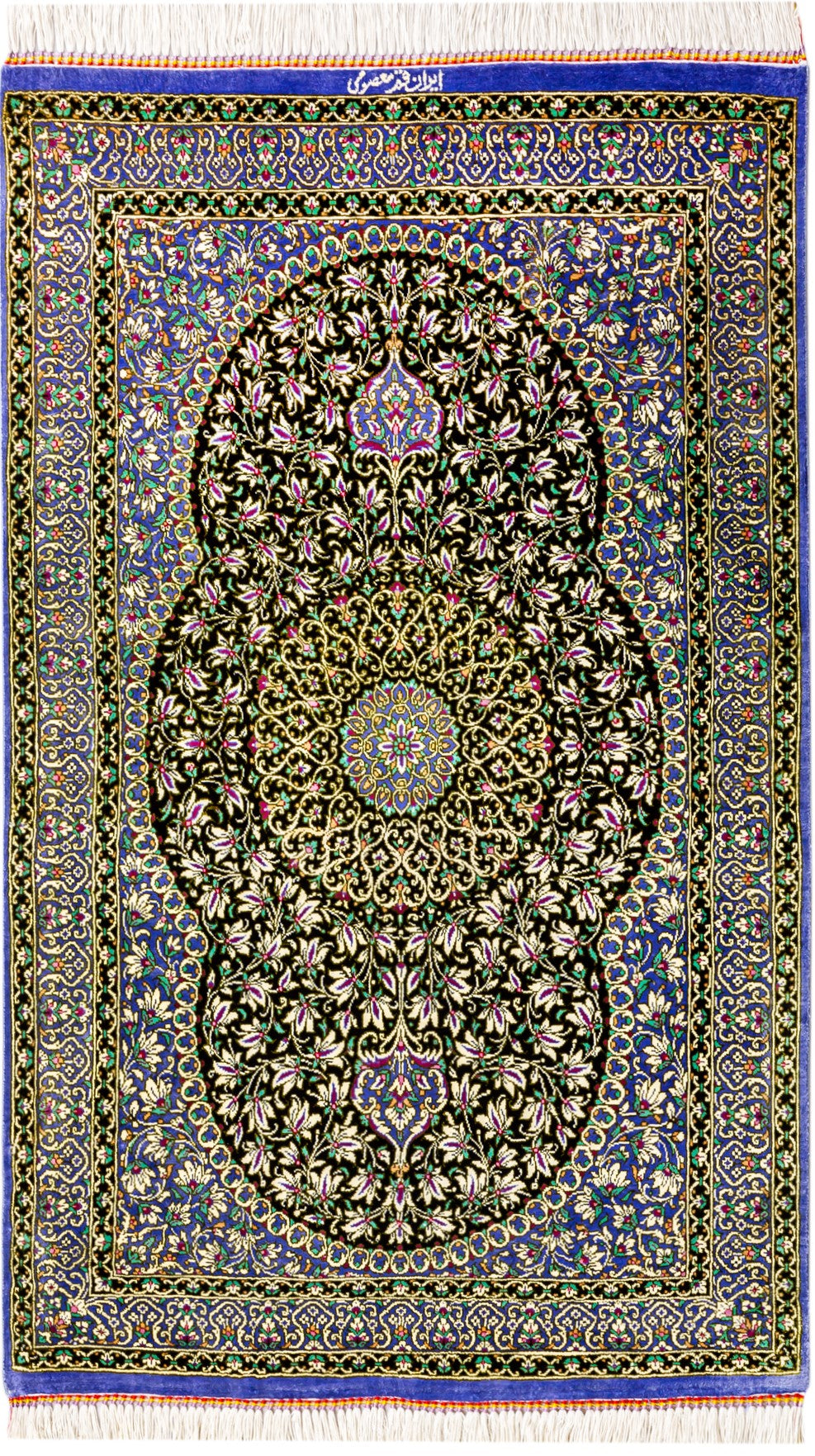 ペルシャ絨毯 クム産 シルク 100%[ Musavi/ムサビ工房] メダリオン柄 ID12024
