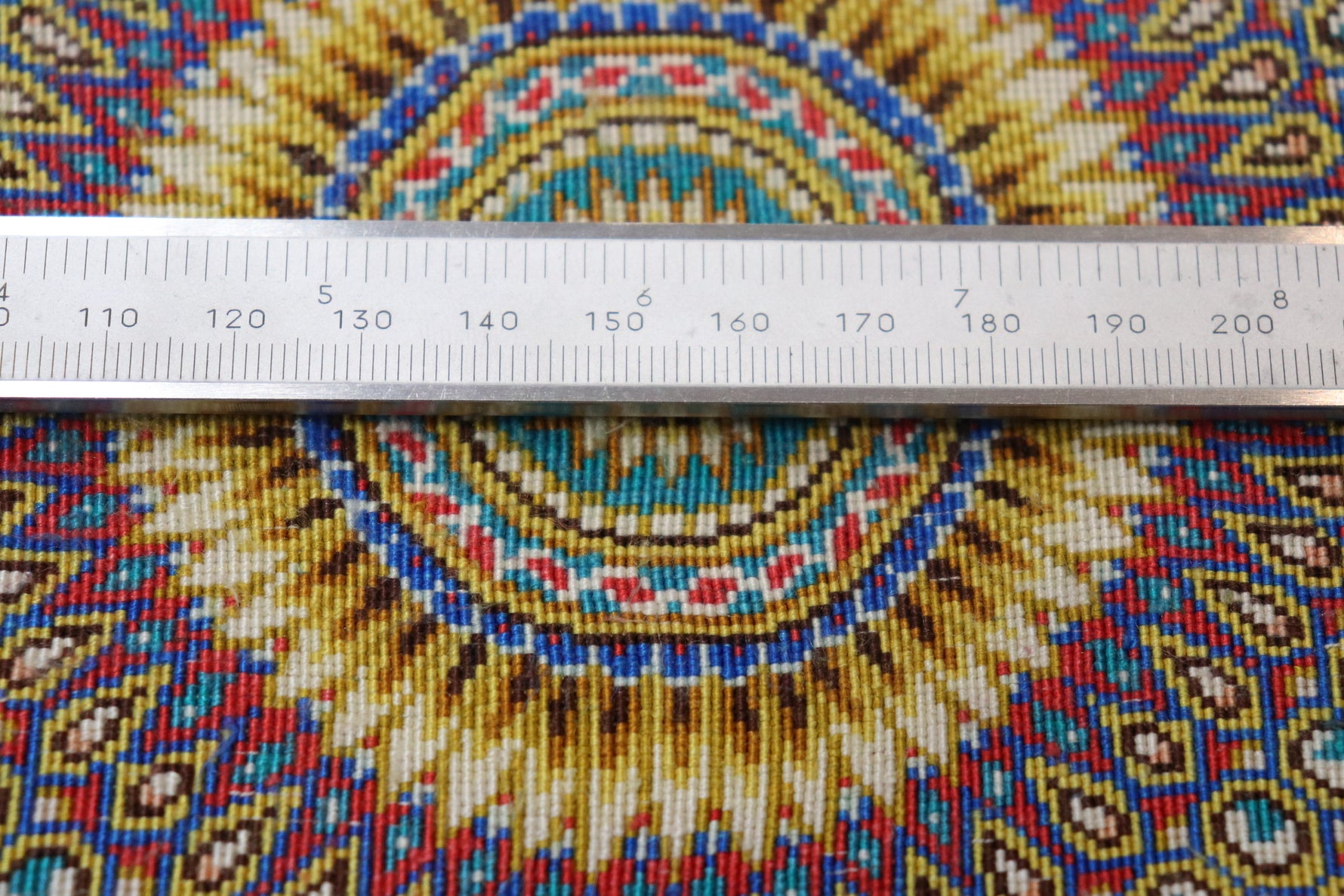 ペルシャ絨毯の真価は、実は裏側裏側からこそわかる!最高級のペルシャ絨毯は、1cmあたり10ノット(織り目)の精緻な結びが施され、その細やかさが芸術の域に達しています。