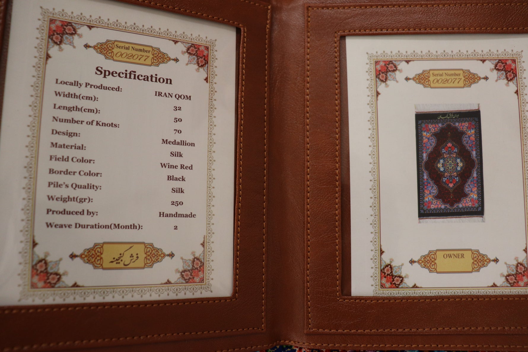 絨毯の品質証明書