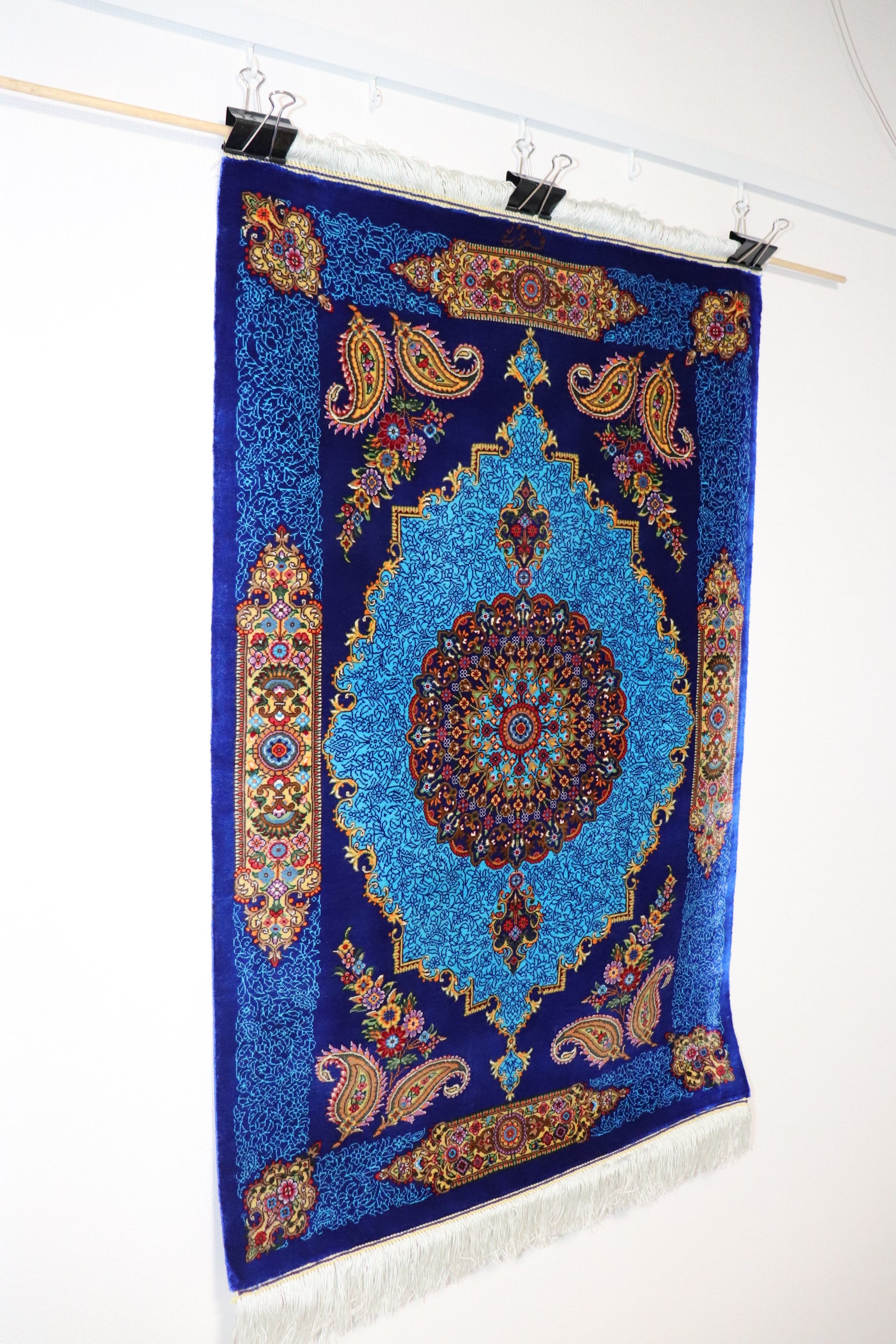 ペルシャ絨毯 クム産 シルク100%[アルバル工房] オリジナル ペイズリー柄 小サイズ 壁飾りに最適 華やかな逸品 ID16010