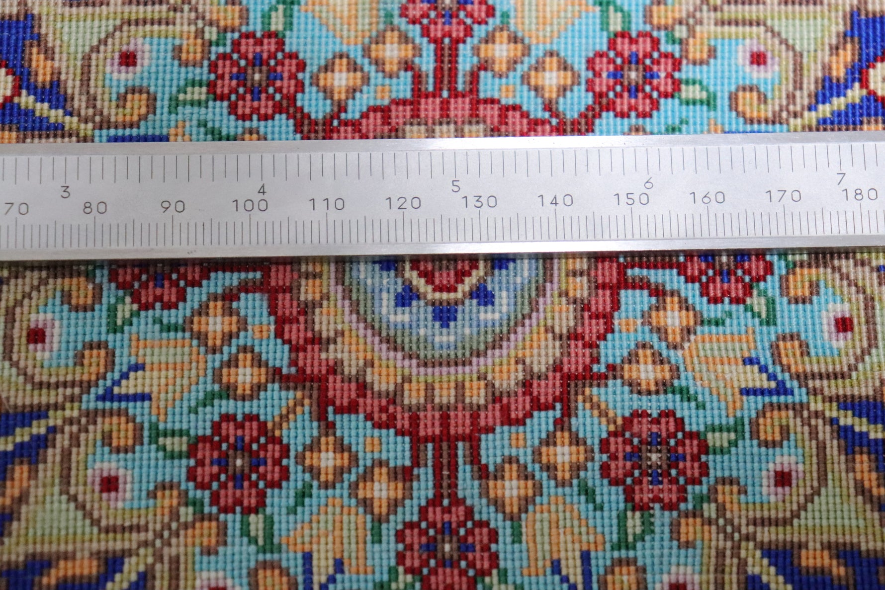 ペルシャ絨毯 クム産 シルク100% [Arbalu/アルバル工房] 美しいスカイブルー IDI16016