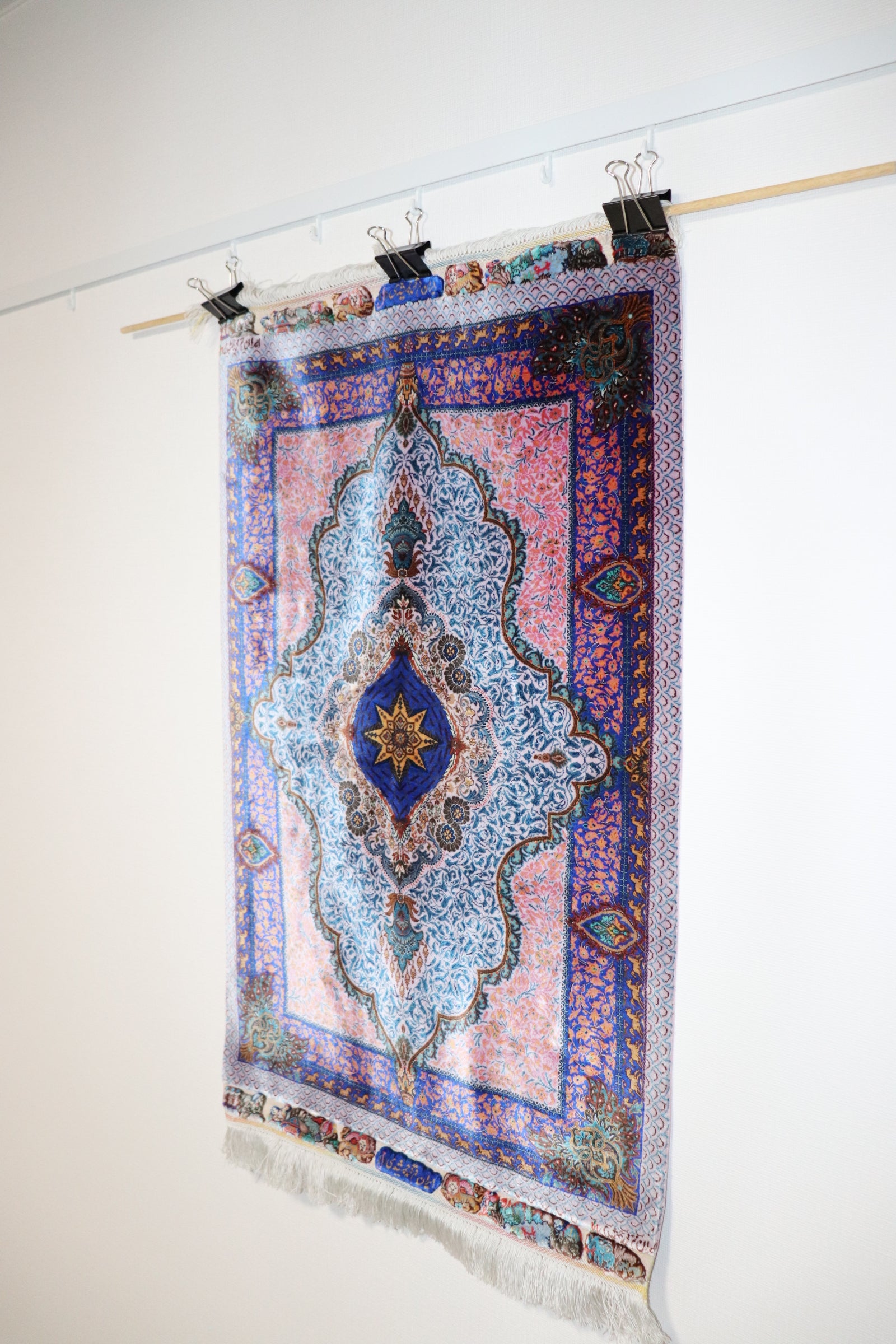 こちらの絨毯は、その細部までのこだわりと芸術性の高さから、リビングルームやエントランスホールの装飾に最適です。また、壁掛けとしても使用できるため、空間を一層格調高く演出することができます。