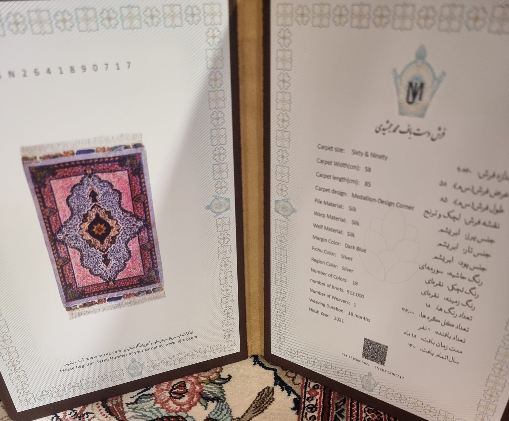 ペルシャ絨毯 クム産 シルク100% [モハマドジャムシディ工房] 最高密度 絨毯の王様 ID18034