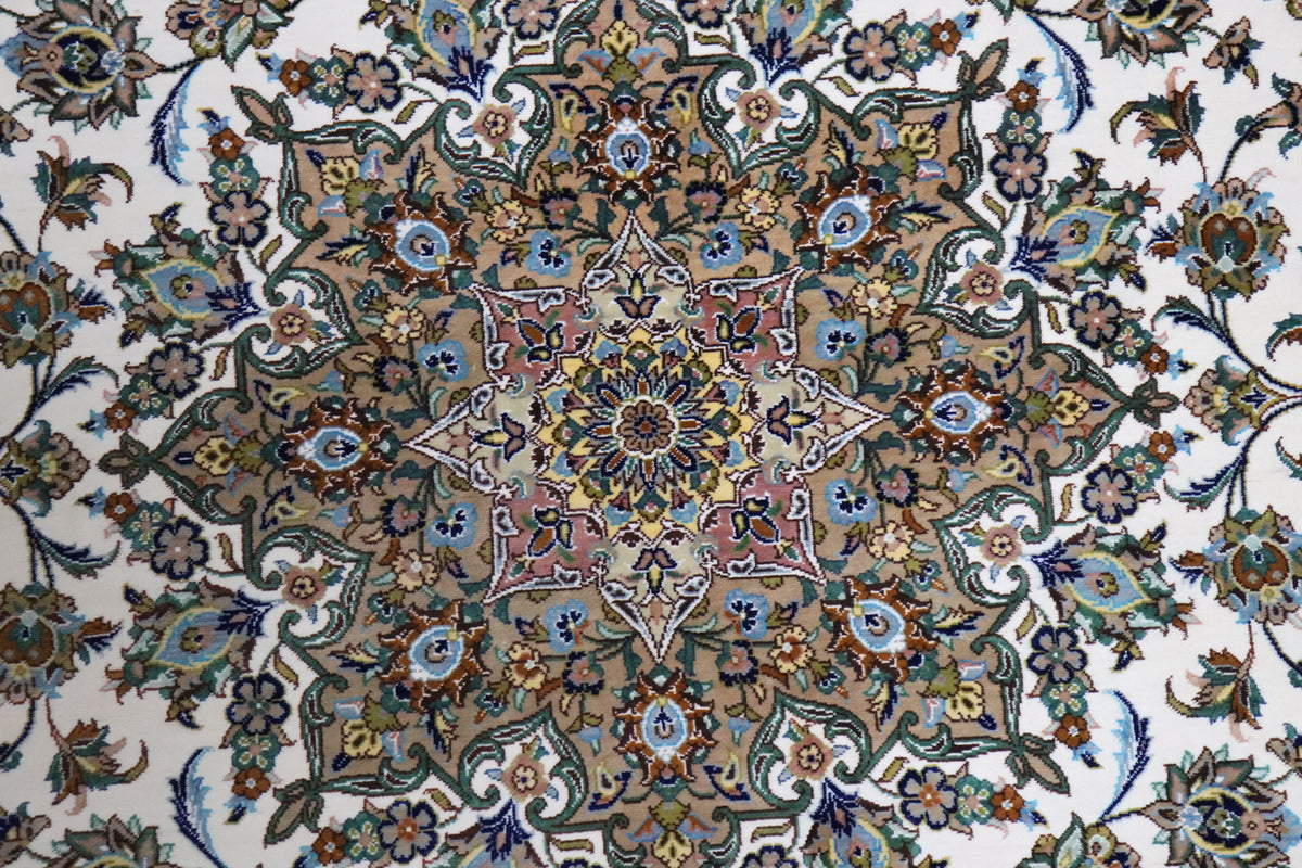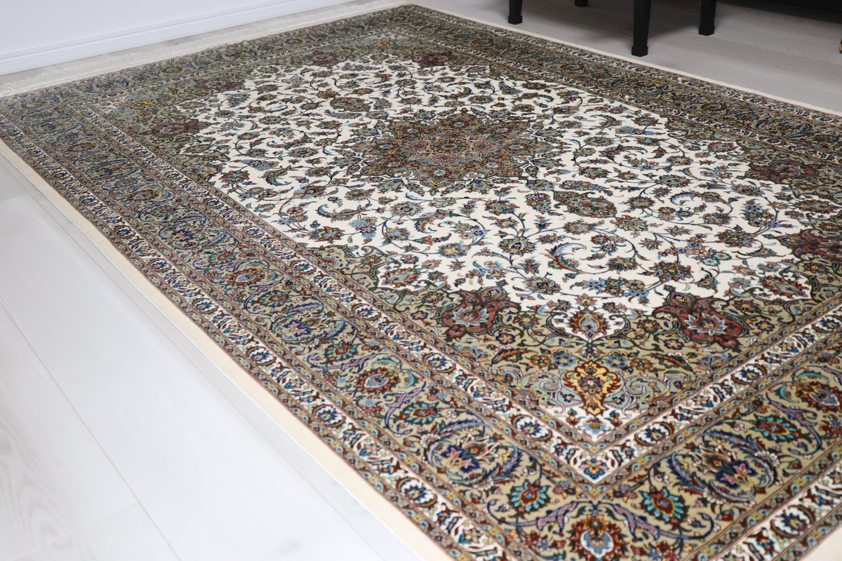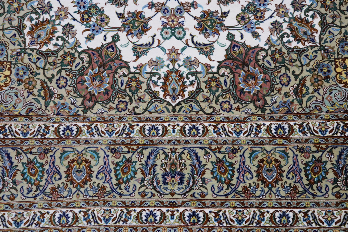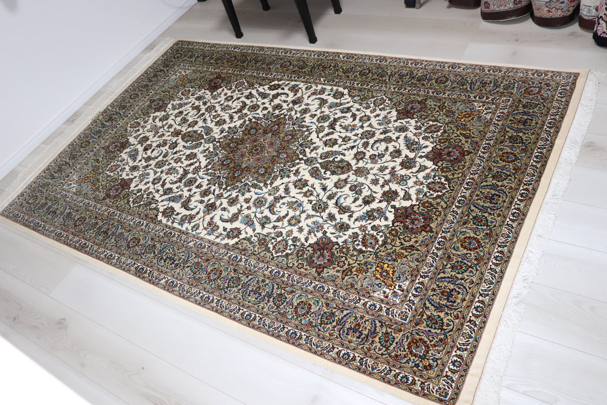 ペルシャ絨毯 クム産 シルク100% [アルバル工房] カーシャン柄 リビングサイズ ID11008