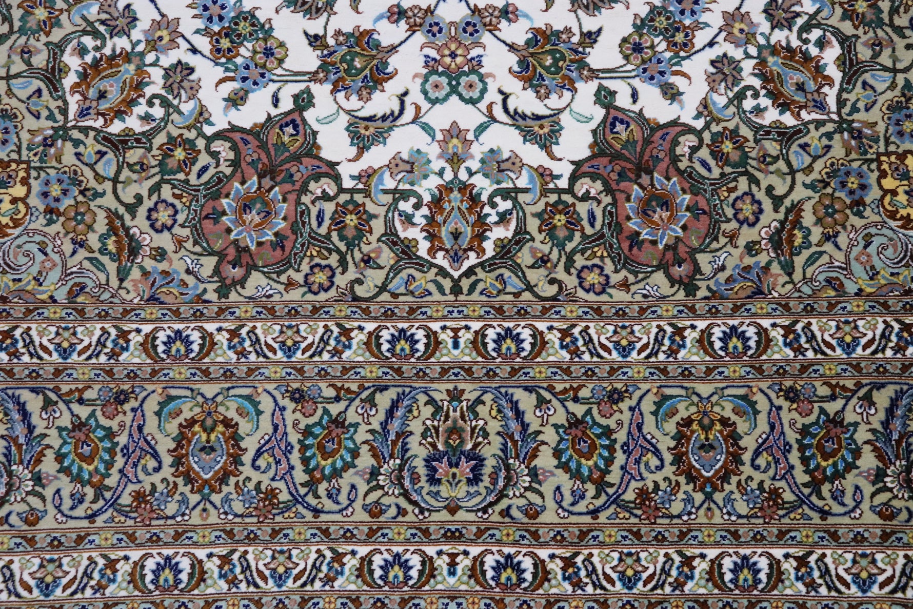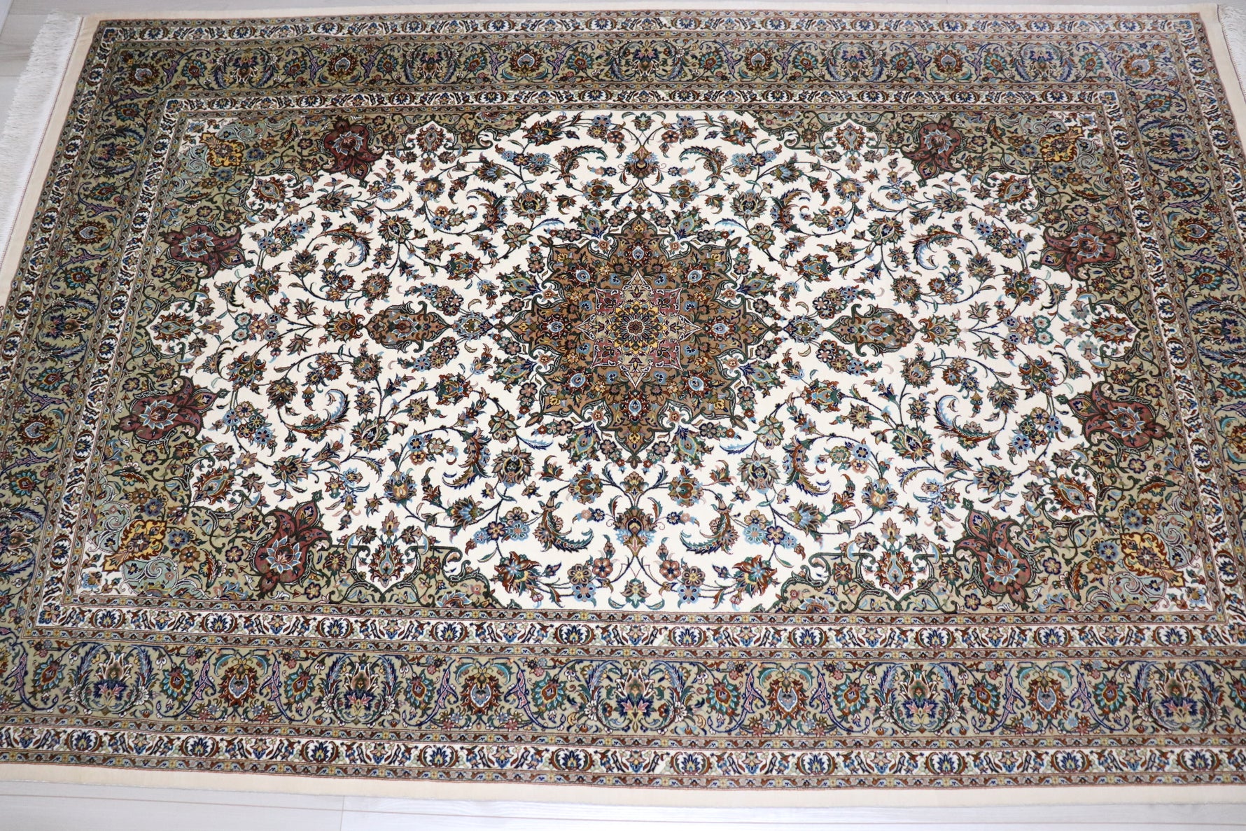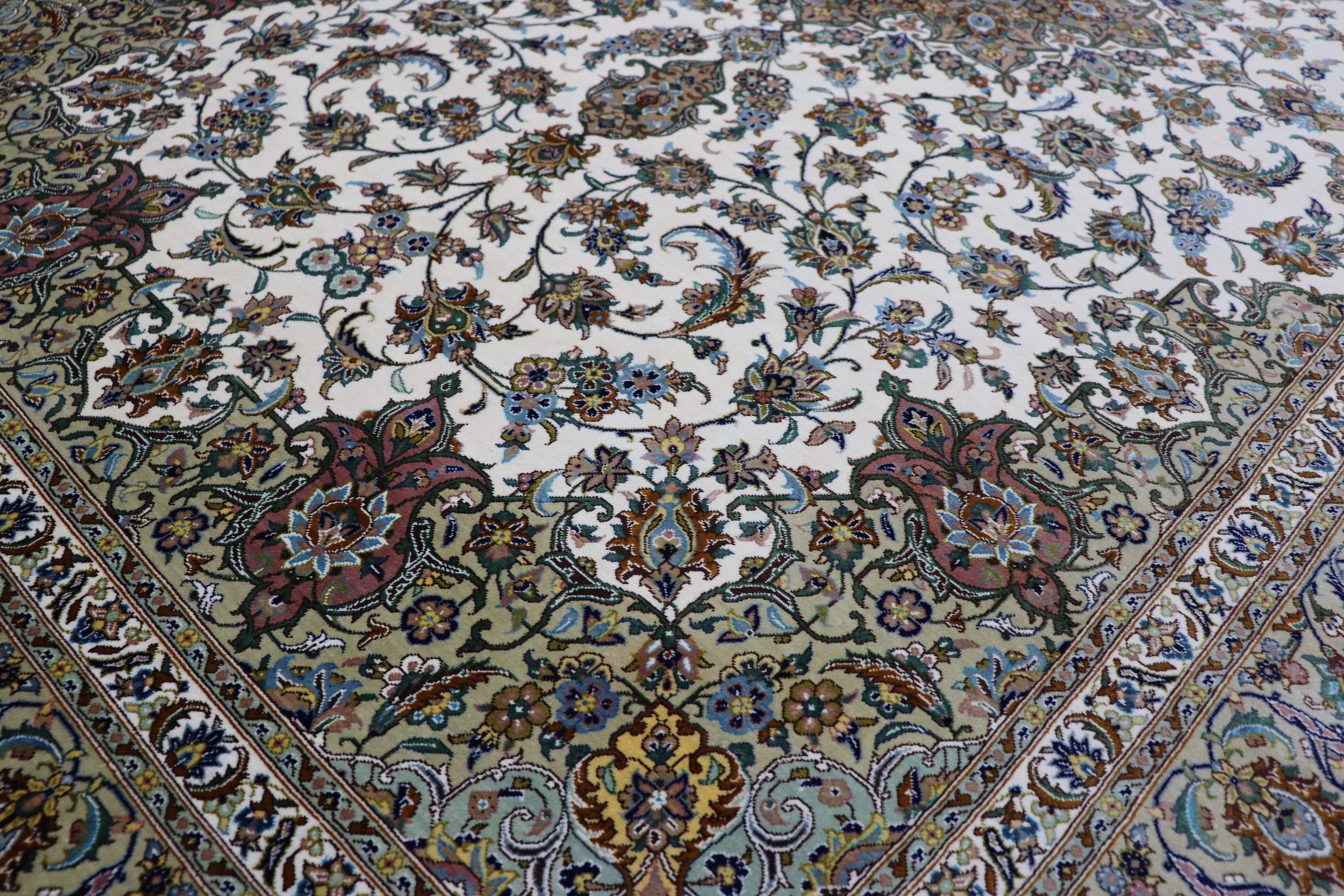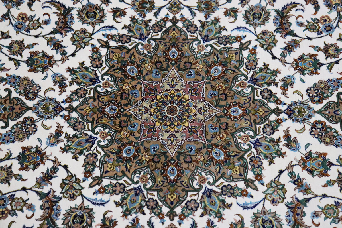 ペルシャ絨毯 クム産 シルク100% [アルバル工房] カーシャン柄 リビングサイズ ID11008