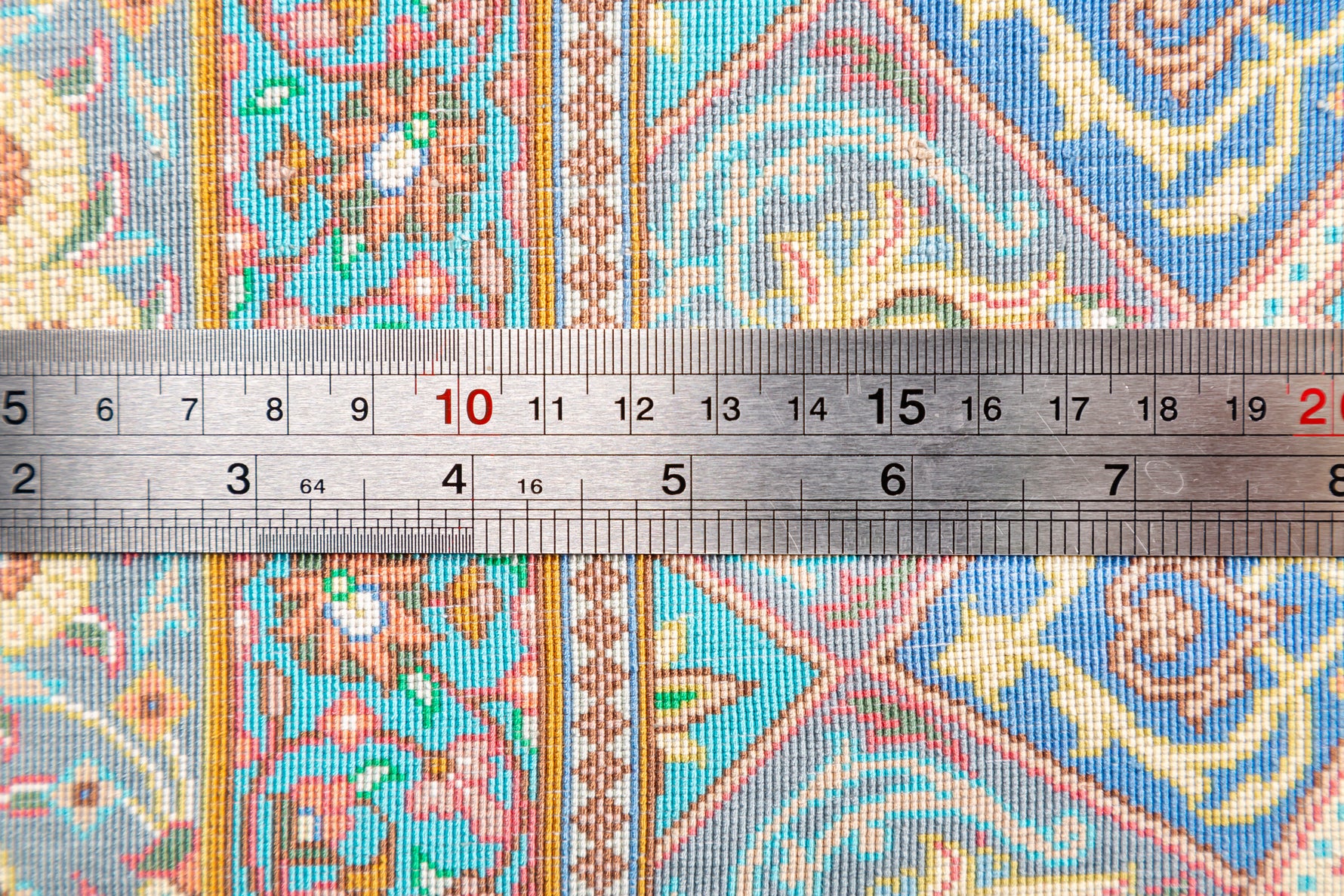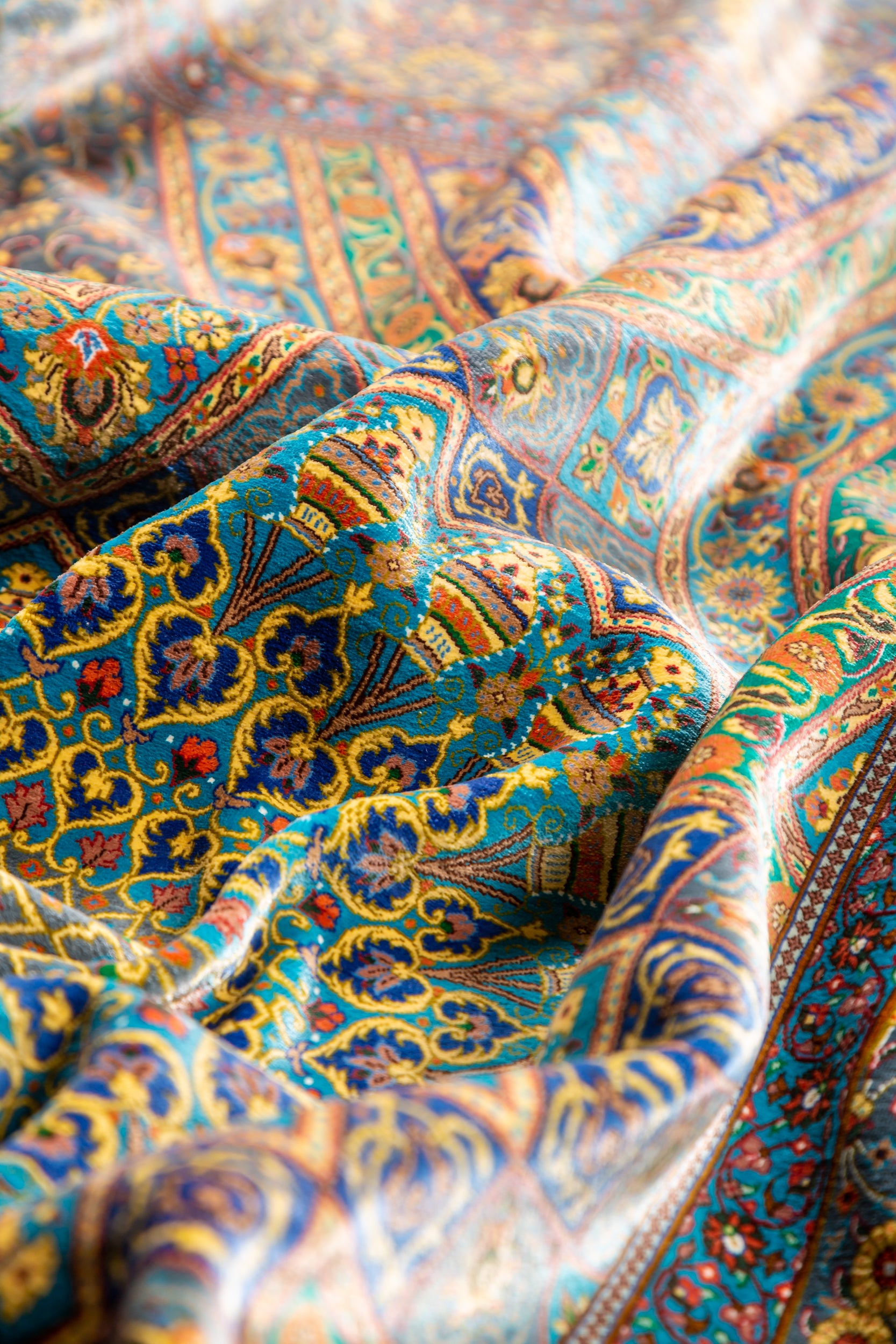 The density reaches 1.2 million knots per square meter, and the total number of knots is over 3.4 million, resulting in a very fine finish. This piece, which was carefully woven over 32 months, is made of 100% silk and has a smooth texture and a lustrous luster.
