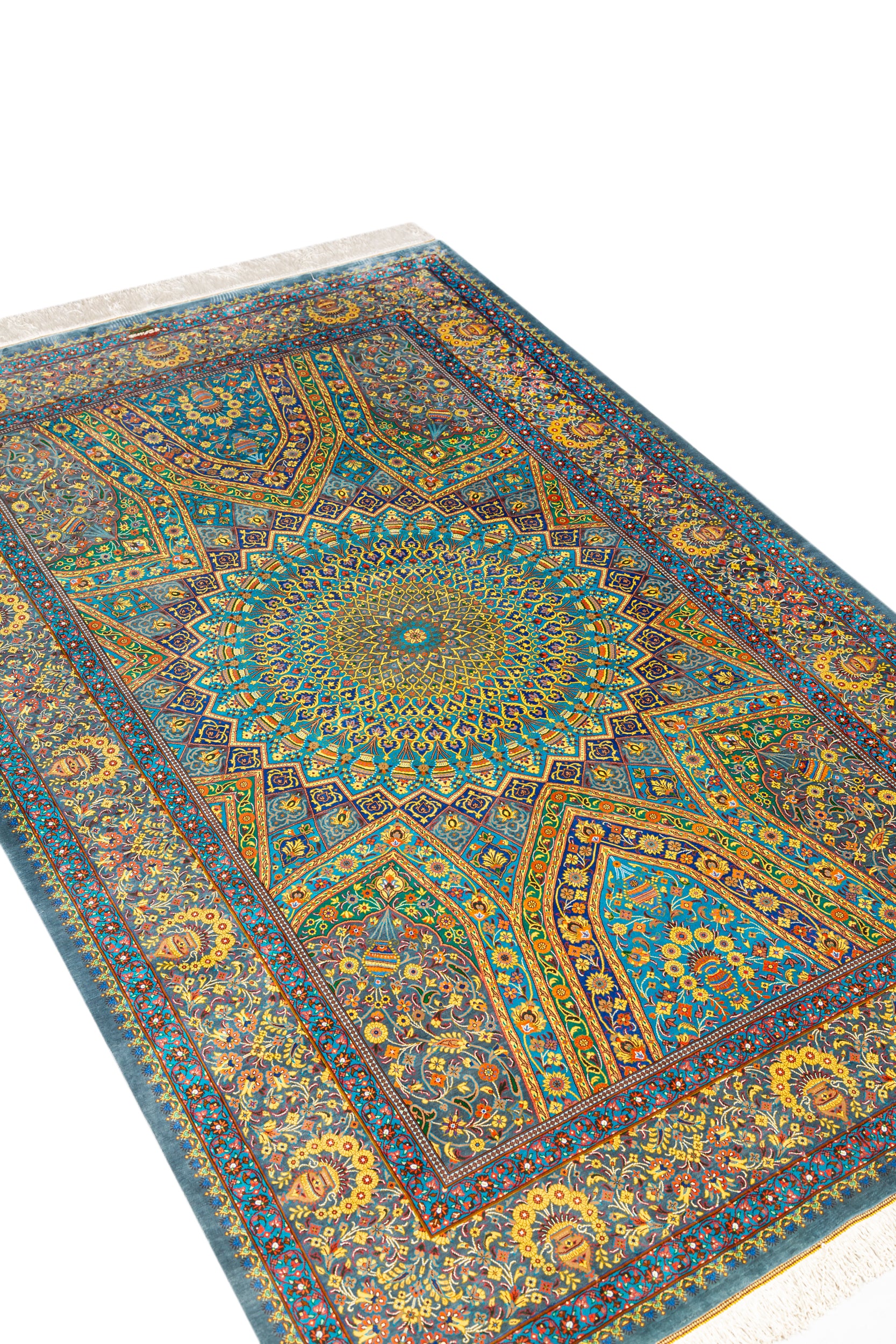 Persian carpet from Qom, 100% silk, Albar Kobo, popular dome pattern