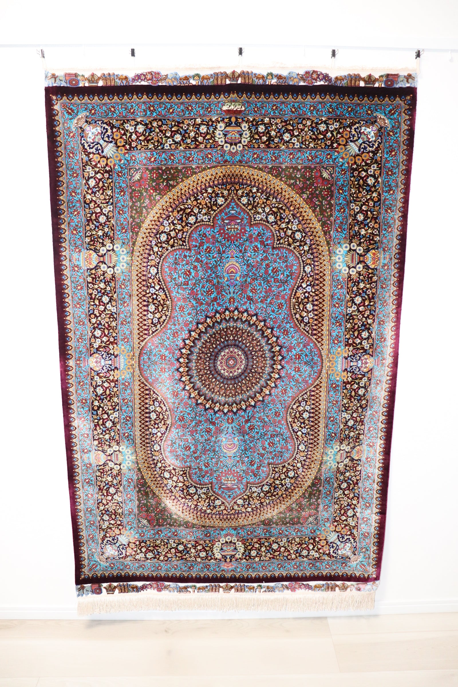 This carpet, which took 17 months to complete, is made of 100% silk and offers a lustrous sheen and texture that will add a touch of luxury to any space. It comes with a quality certificate from the Albar Atelier, so you can be sure of its quality.