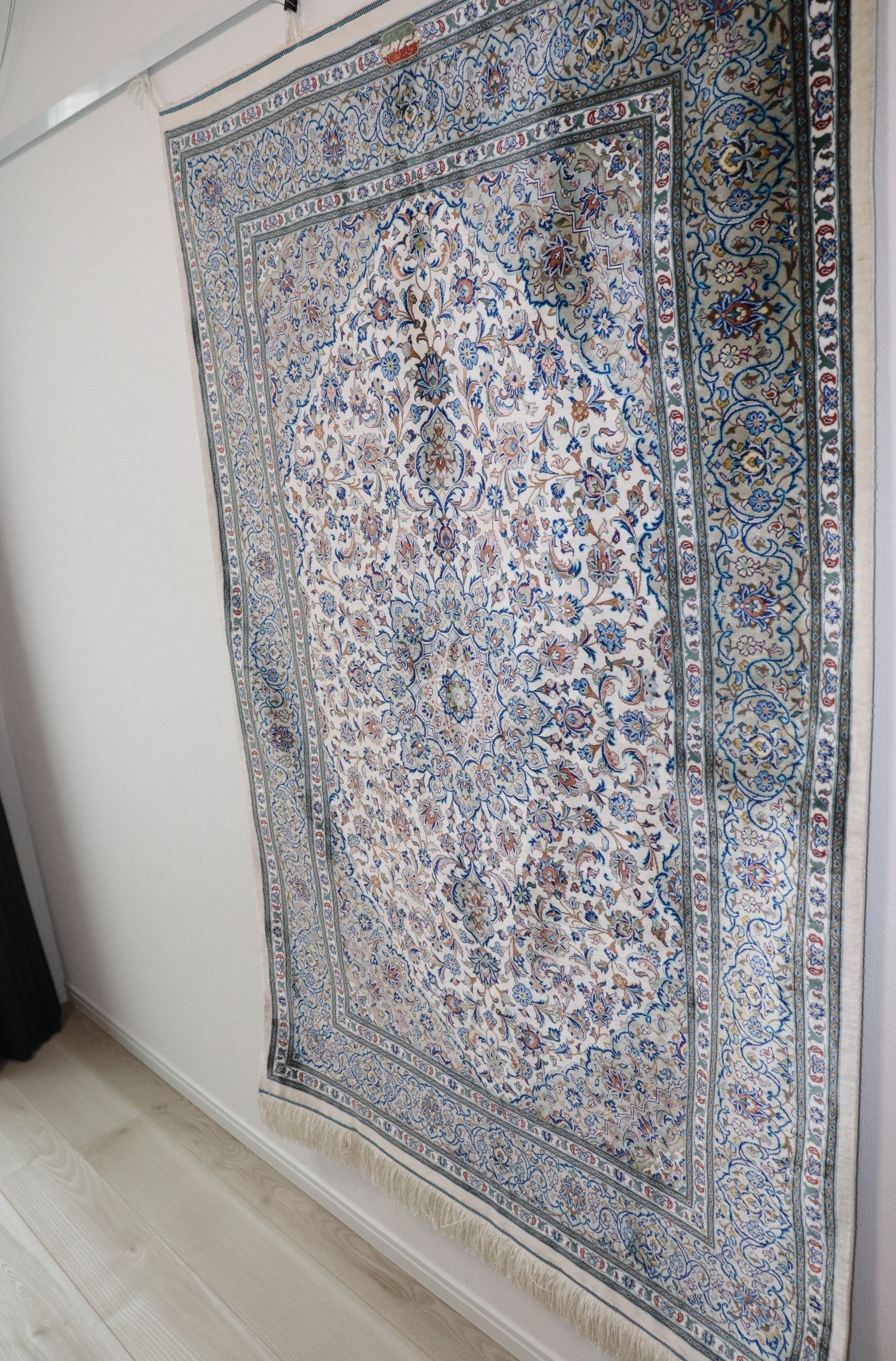 This is a superb hand-woven piece by the Albar Studio. The field color is a beautiful white, and the border is a calm beige, giving it a sophisticated impression. The overall design is simple, yet exudes a luxurious and noble atmosphere.
