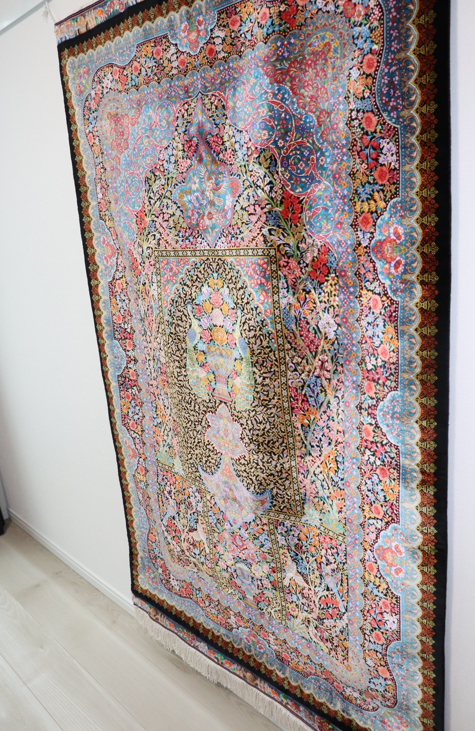 Persian carpet from Qom, 100% silk, Albar Studio original, paisley pattern, small size, perfect for wall decoration, gorgeous masterpiece
