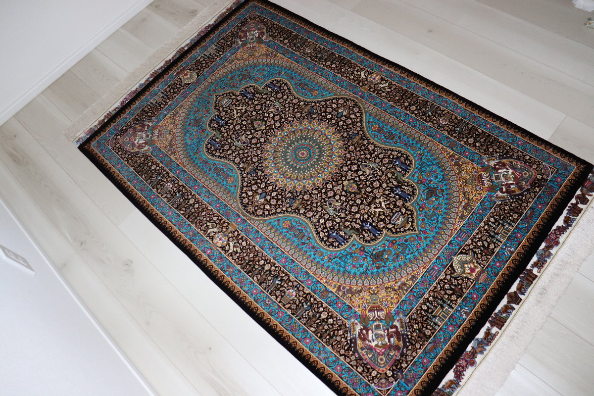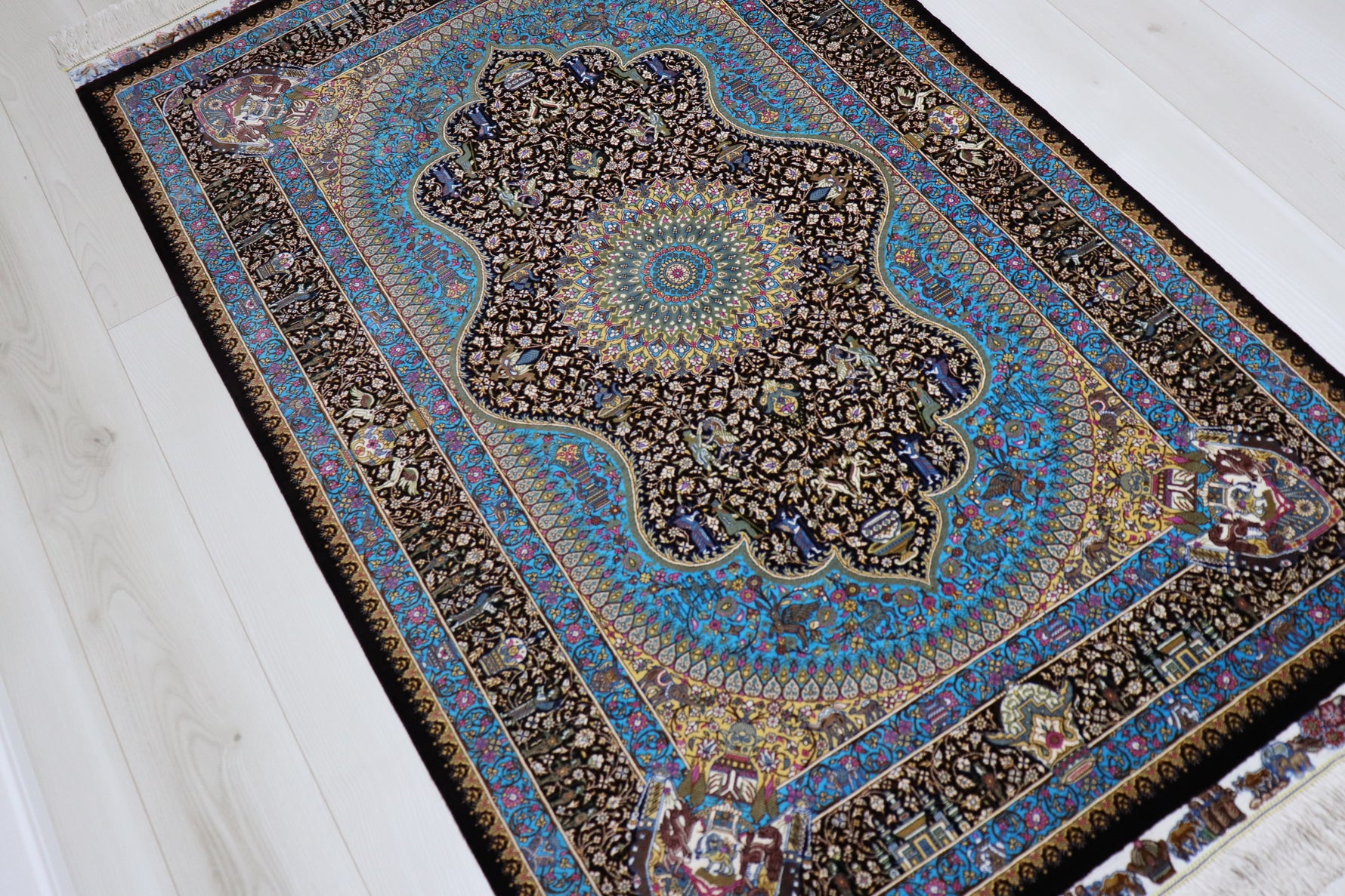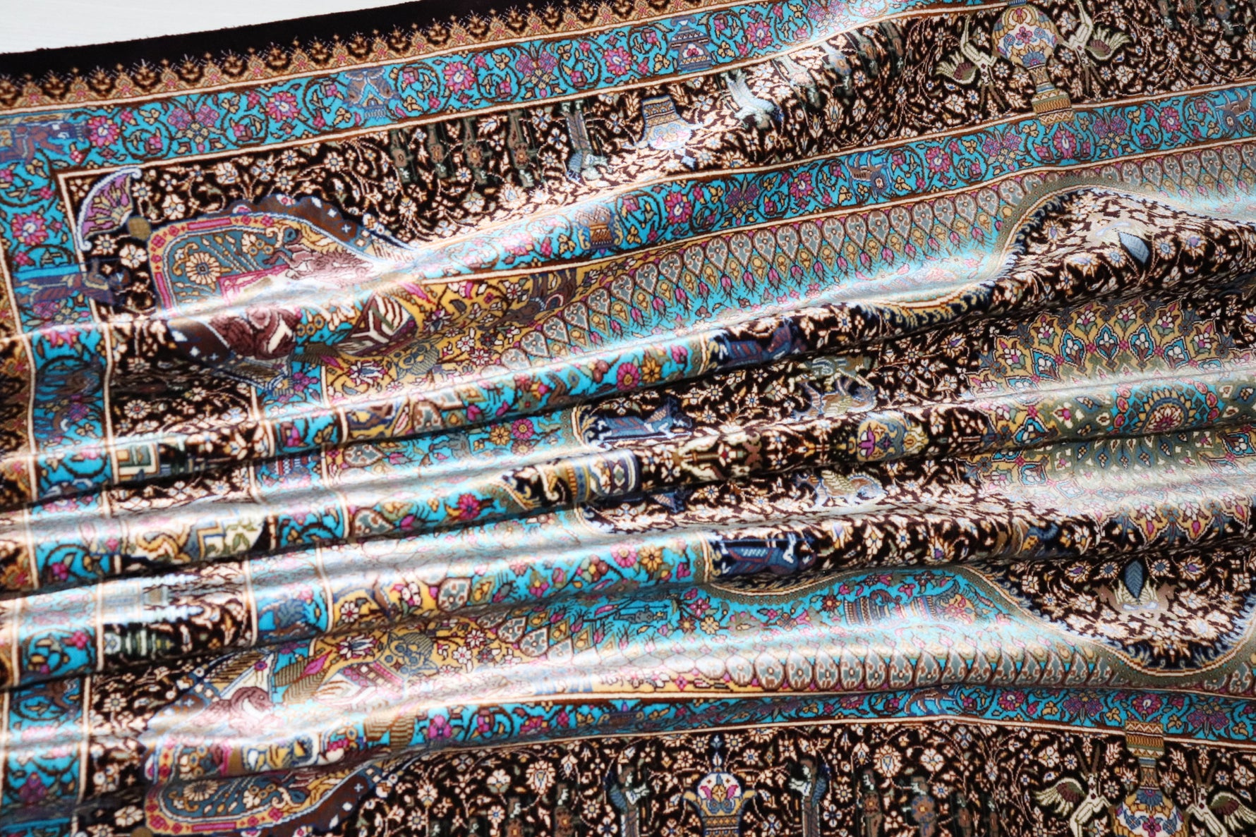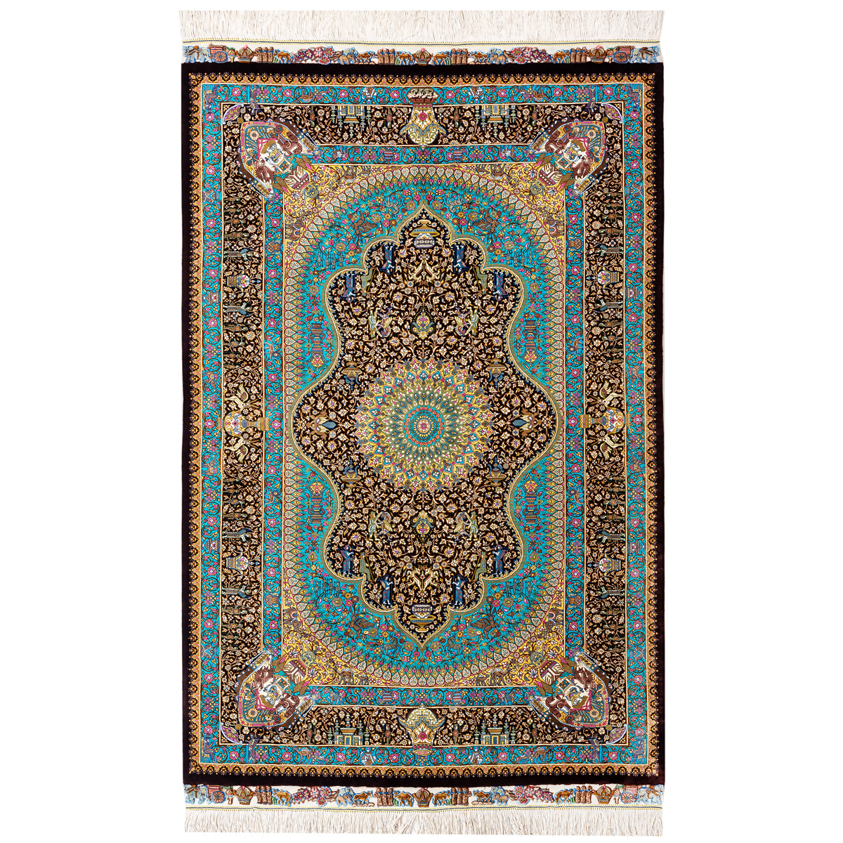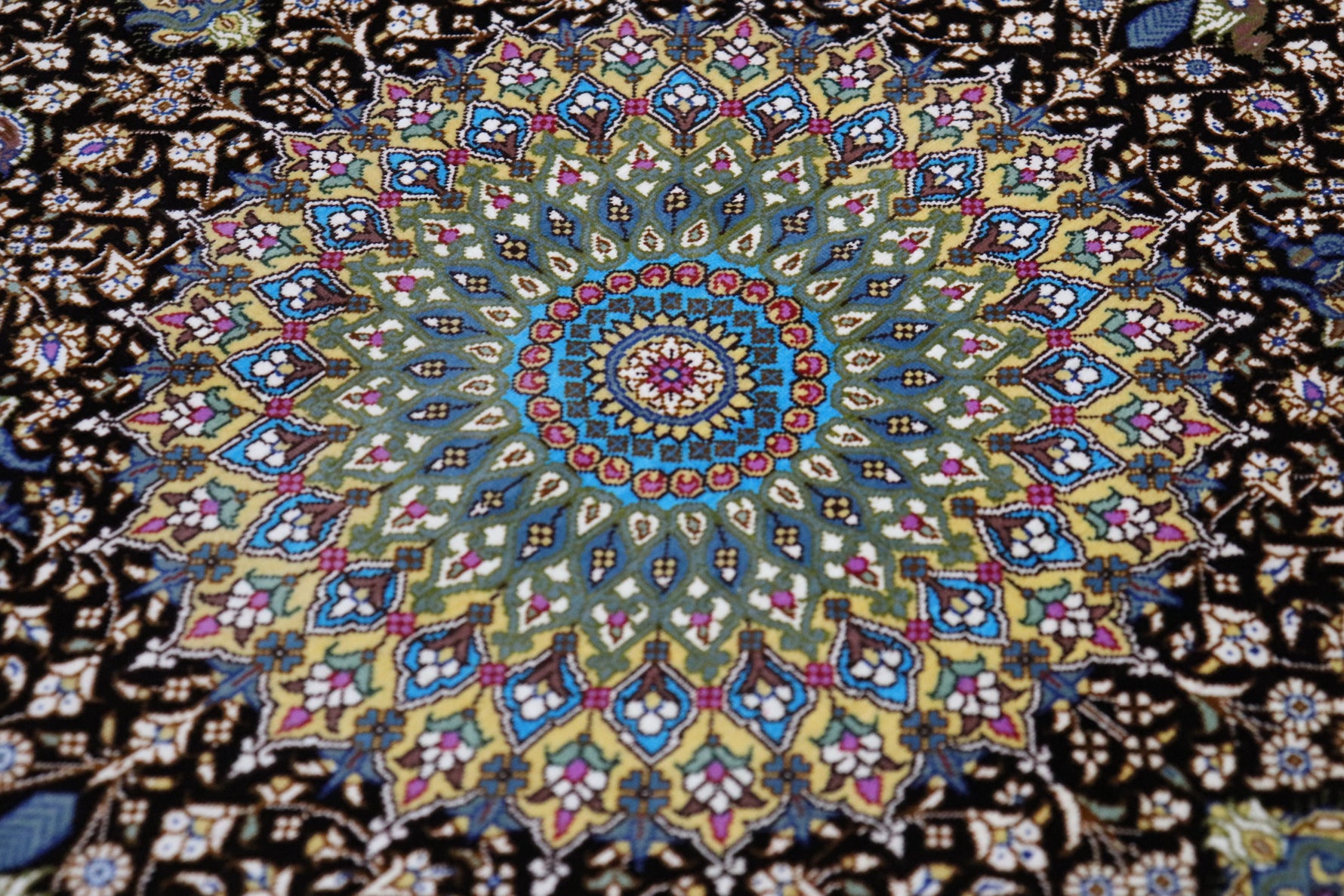 Persian carpet from Qom, 100% silk, Albar Studio, living space size