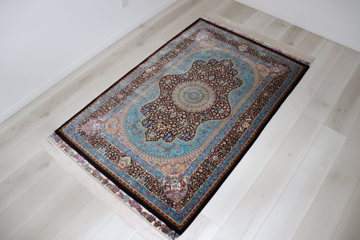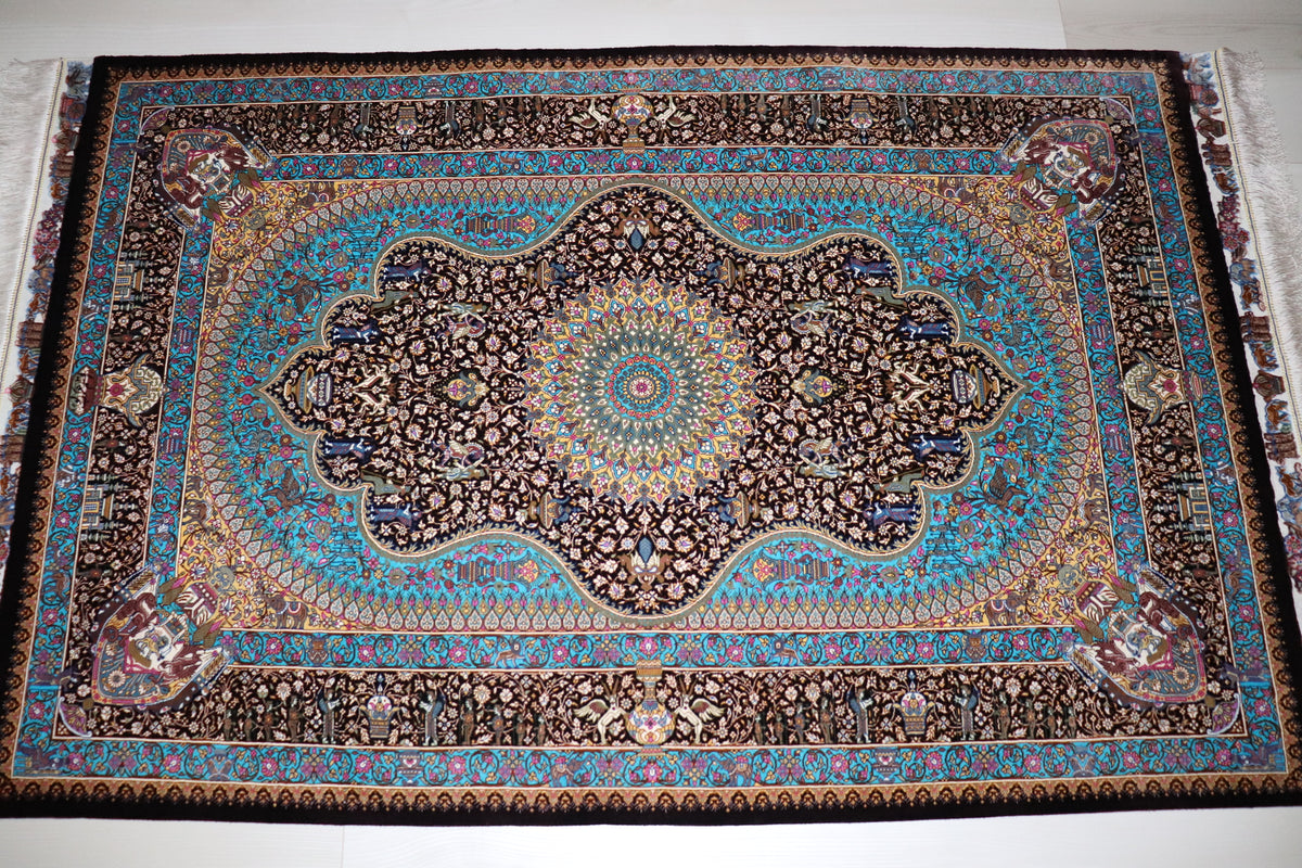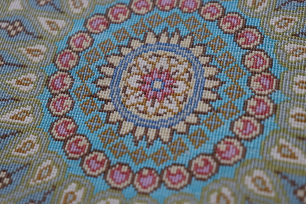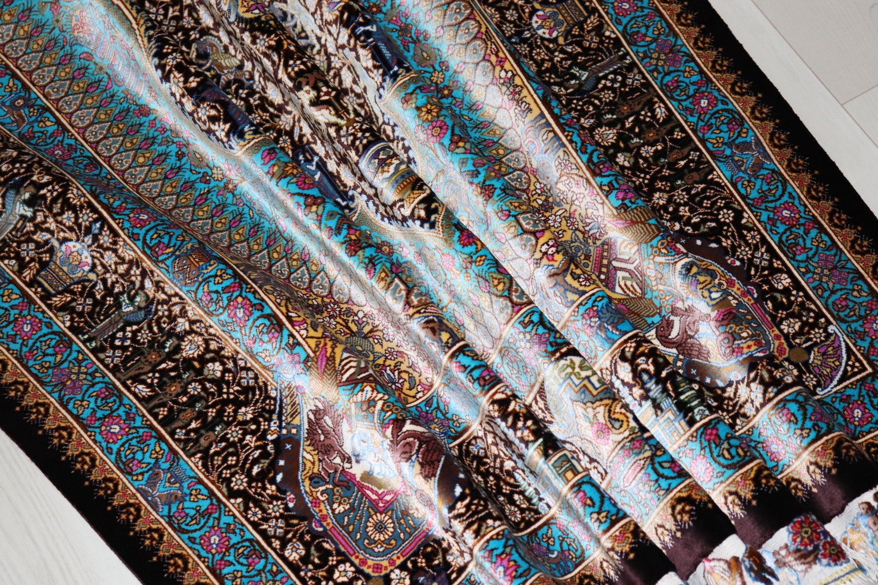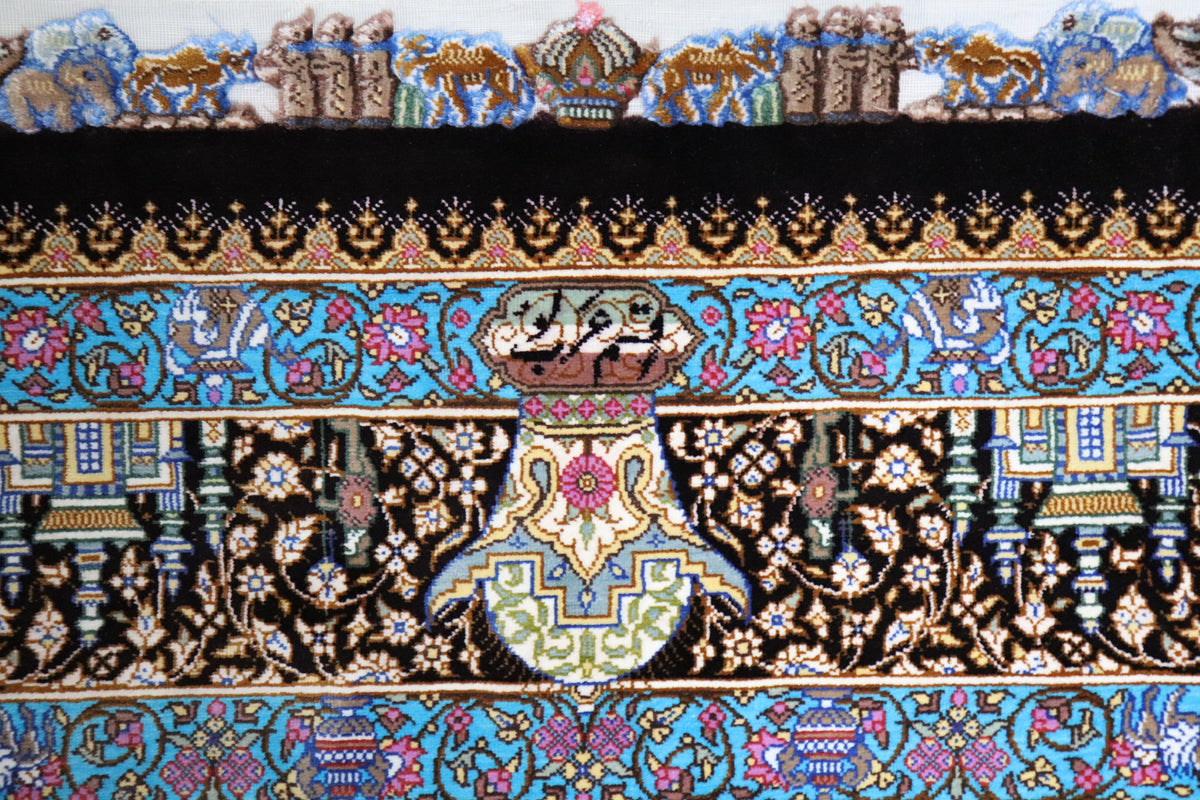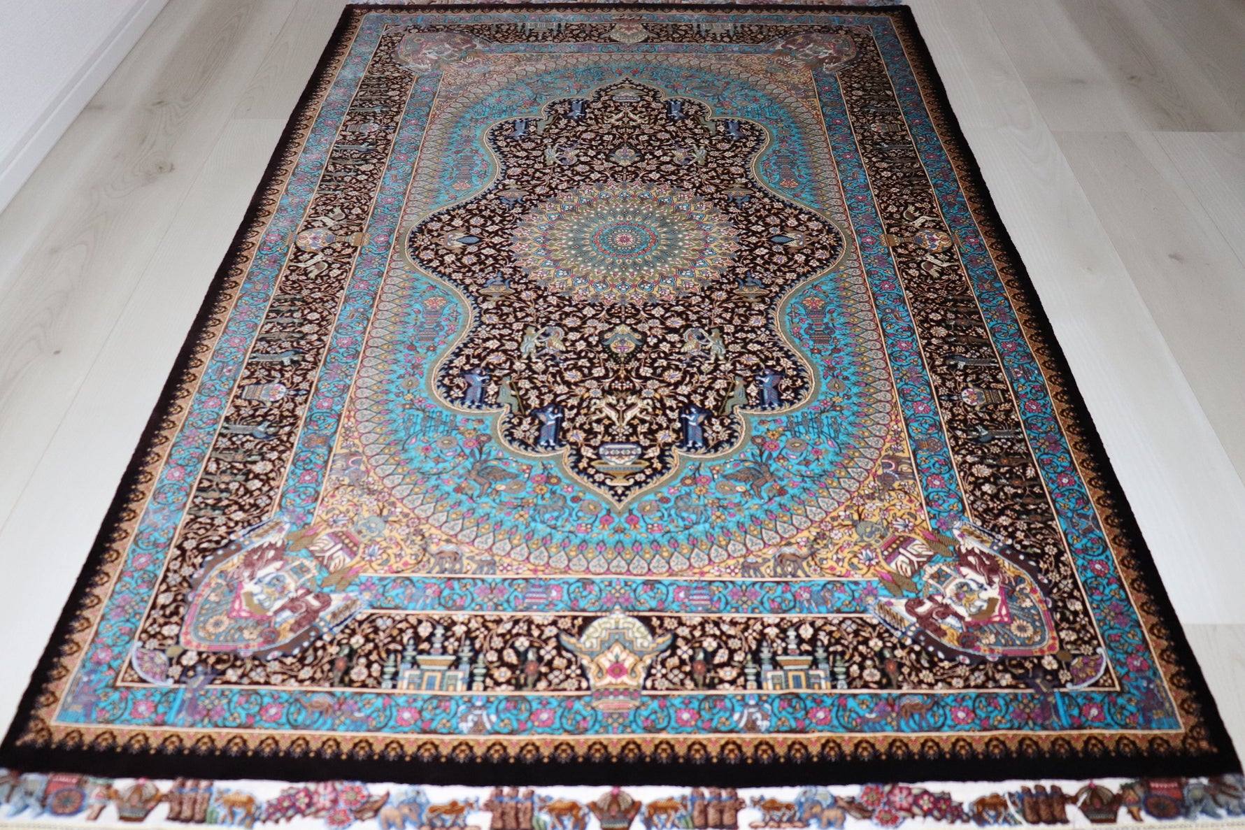 Persian carpet from Qom, 100% silk, Albar Studio, living space size