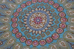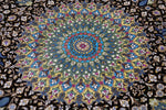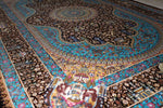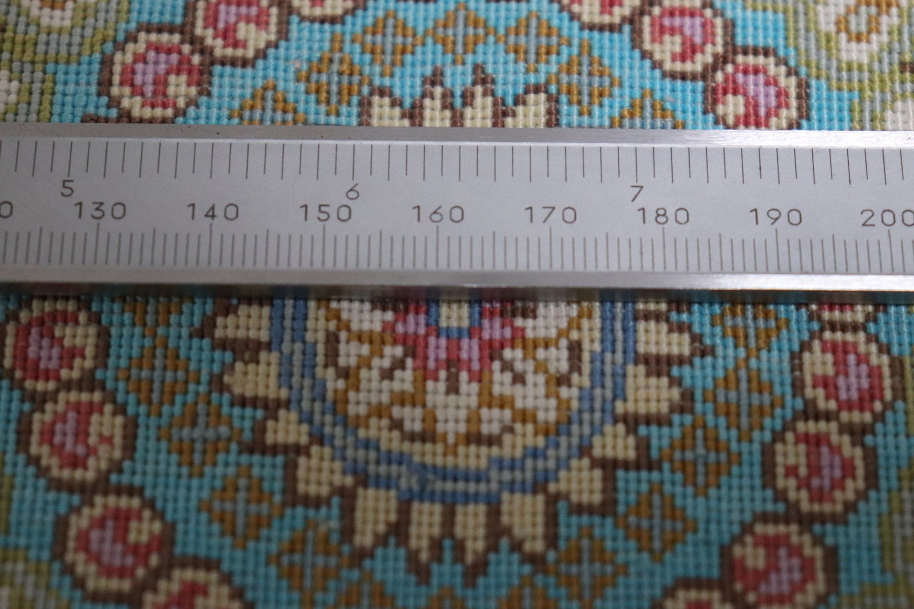 Persian carpet from Qom, 100% silk, Mirmehidi Atelier, the vase pattern and the blue-green color have a beautiful contrast