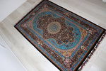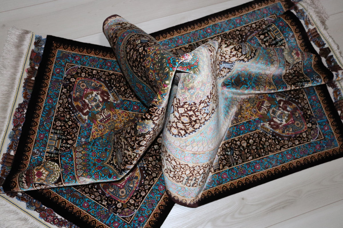 Persian carpet from Qom, 100% silk, Albar Studio original, paisley pattern, small size, perfect for wall decoration, gorgeous masterpiece